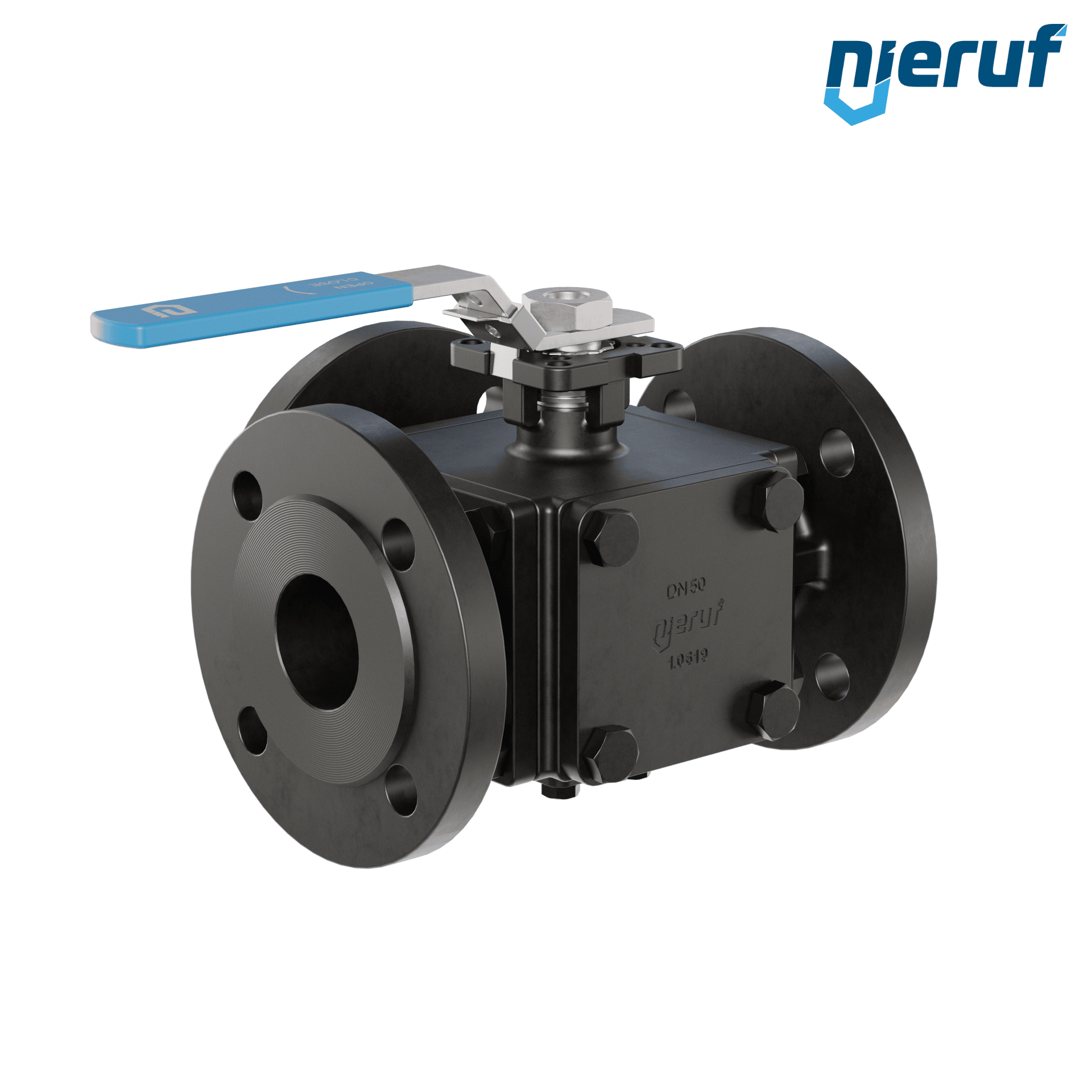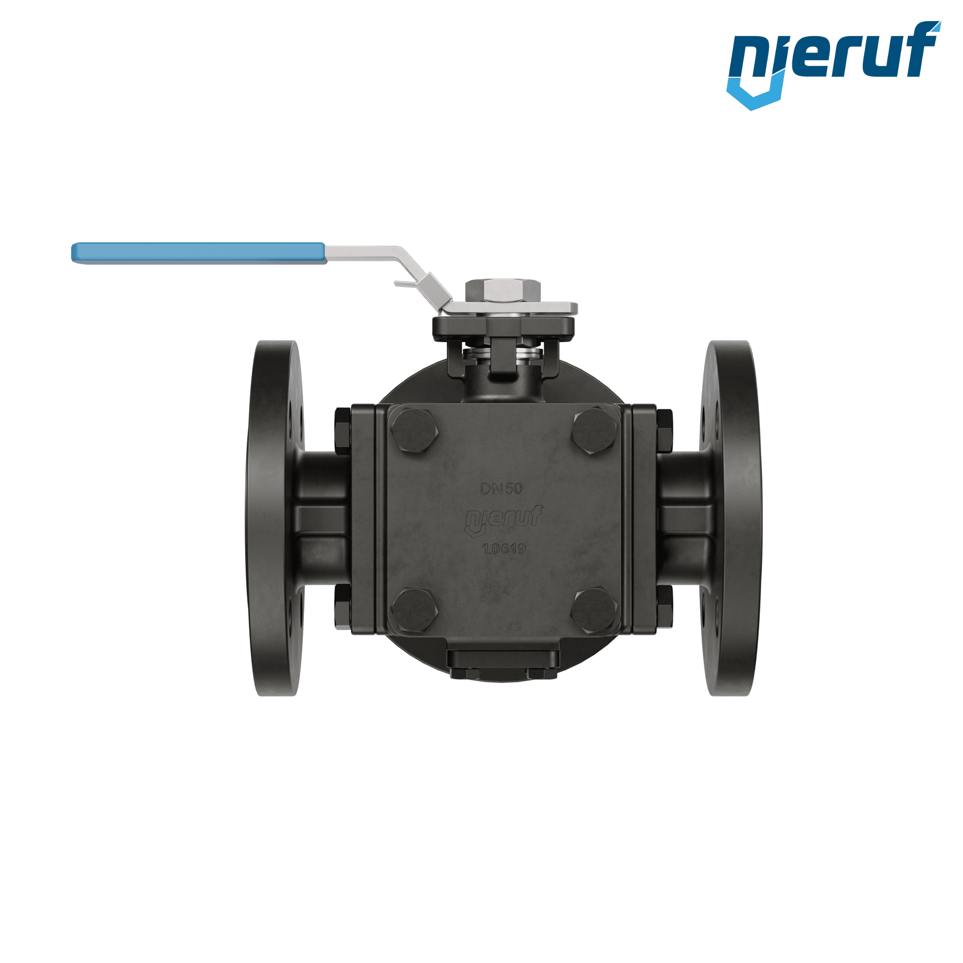 Dreiwege-Flanschkugelhahn DN50 FK08 L-Bohrung Stahlguss 1.0619