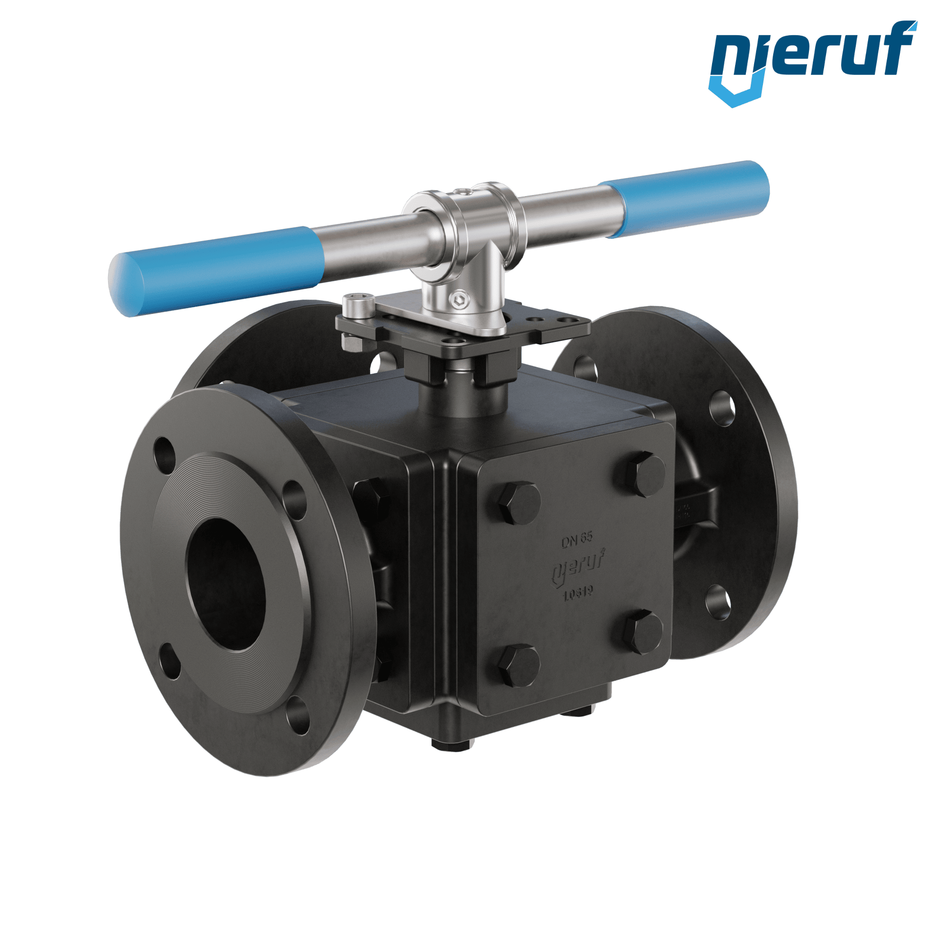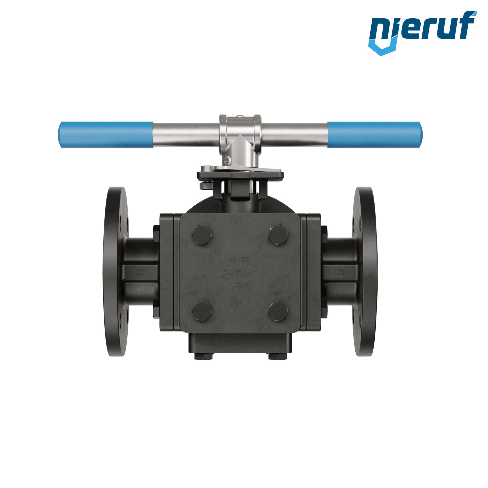 Dreiwege-Flanschkugelhahn DN65 PN16 FK08 Gehäuse Stahlguss 1.0619 Kugel Stahlguss 1.4308 Dichtung TFM 1600 / PTFE L-Bohrung