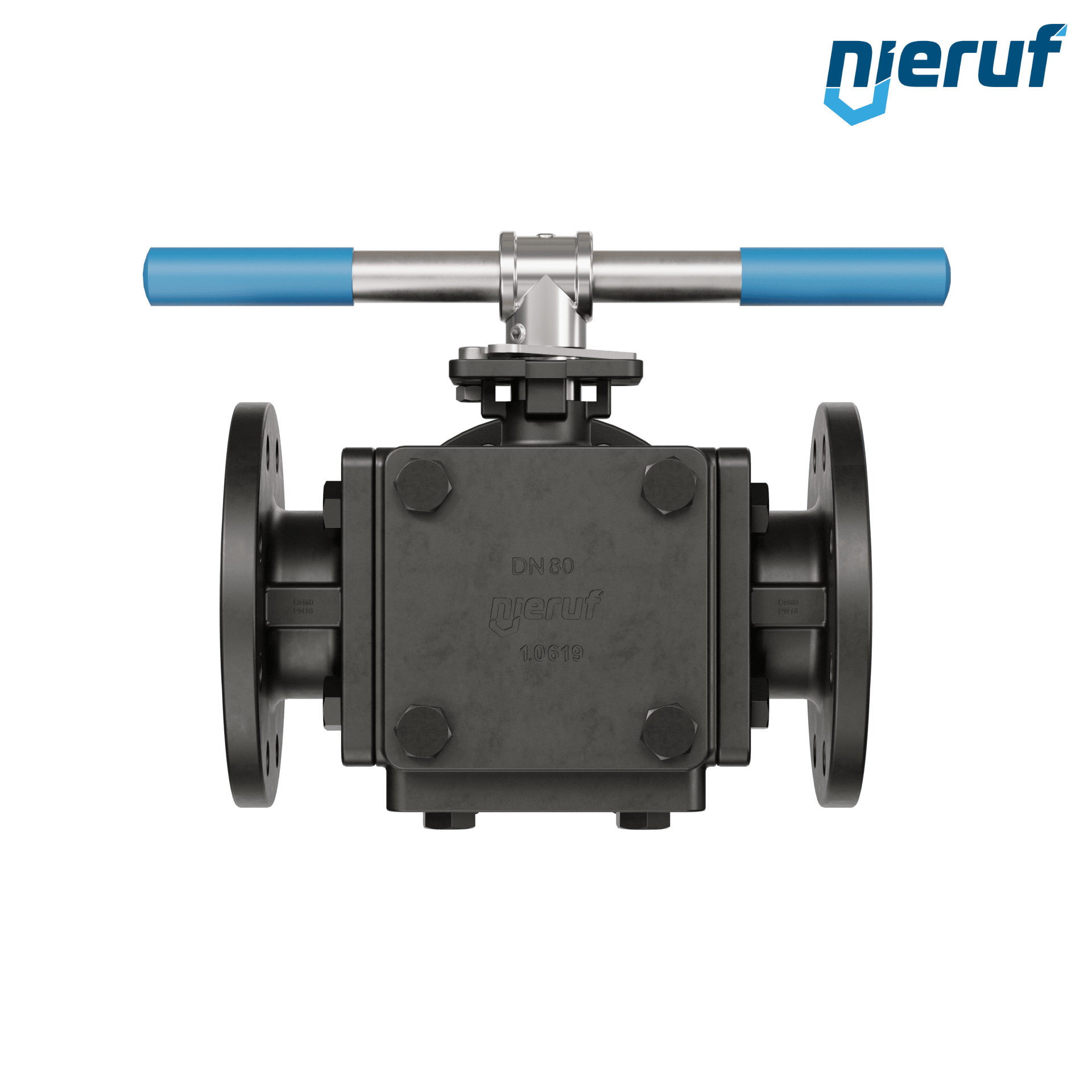 Dreiwege-Flanschkugelhahn DN80 PN16 FK08 Gehäuse Stahlguss 1.0619 Kugel Stahlguss 1.4308 Dichtung TFM 1600 / PTFE T-Bohrung