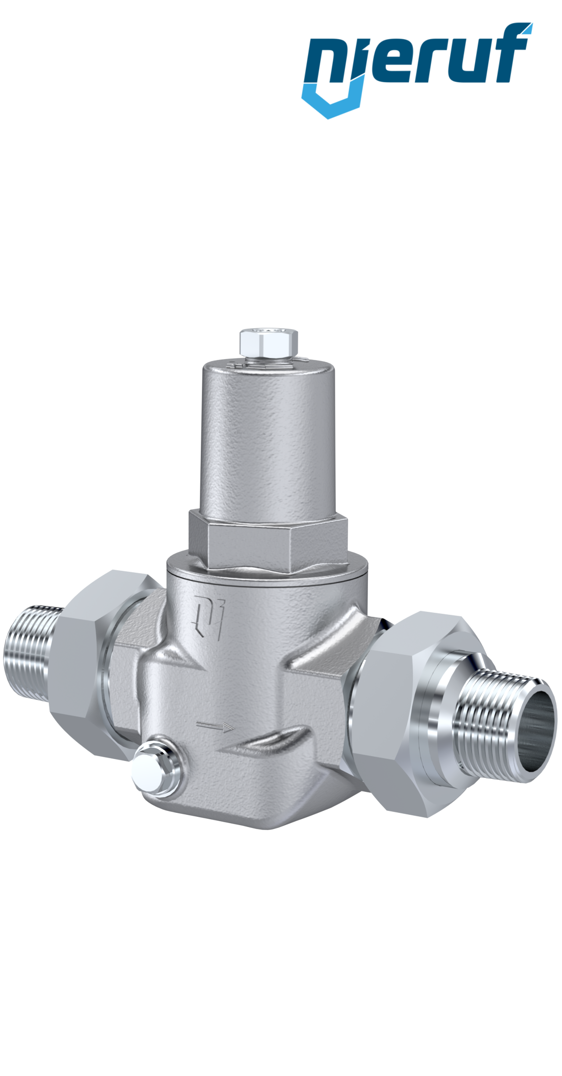 Druckminderer 1/2" Zoll mit Außengewinde ISO 7 / BSP-T aus Edelstahl Dichtung FPM / FKM für flüssige & neutrale gasförmige Medien, Einstelldruck 1,5 - 6,0 bar