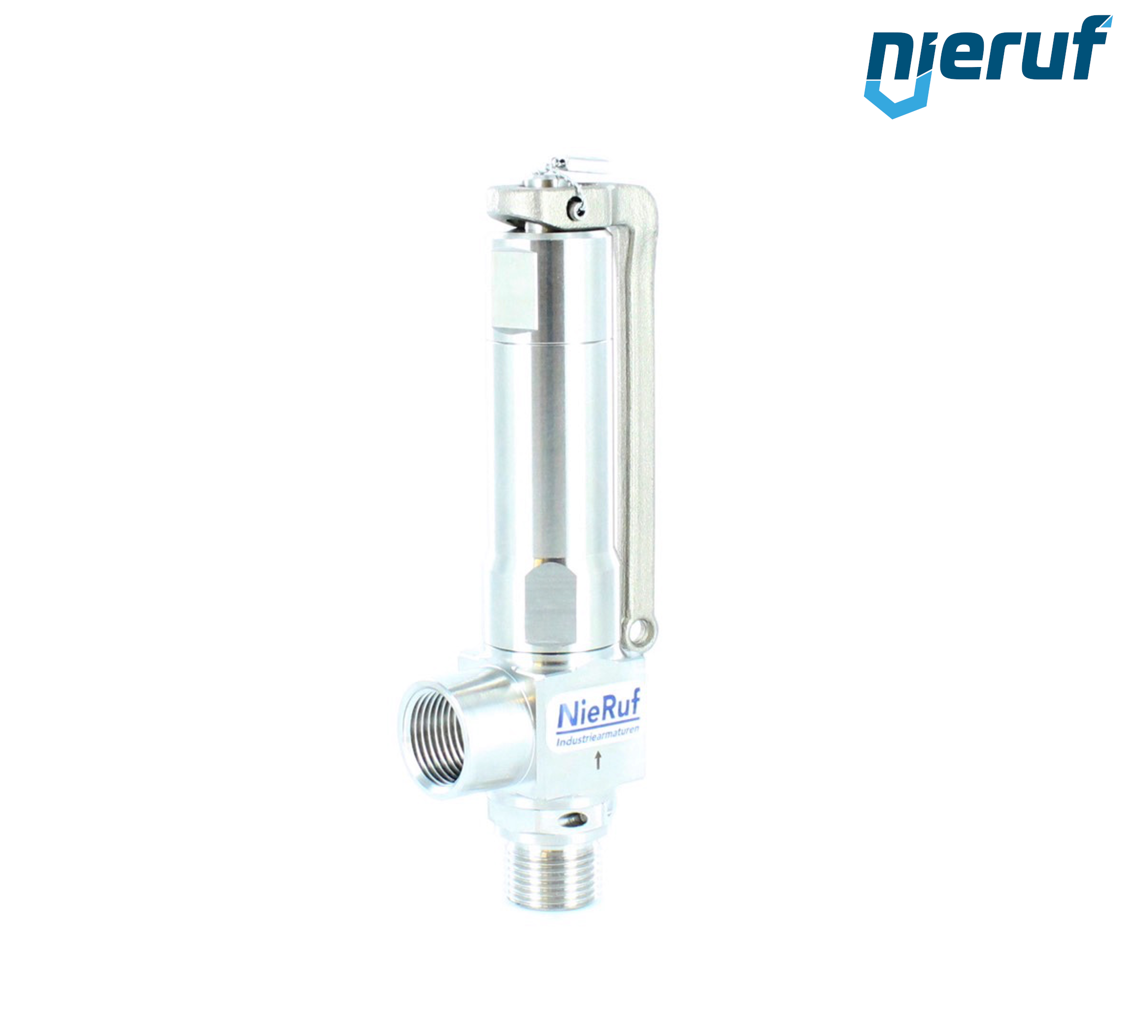 Eck-Sicherheitsventil 3/8" AG x 3/8" IG SV12 für flüssige und gasförmige Medien aus Edelstahl Dichtung FKM Druck 1,6 - 30,0 bar mit Hebel