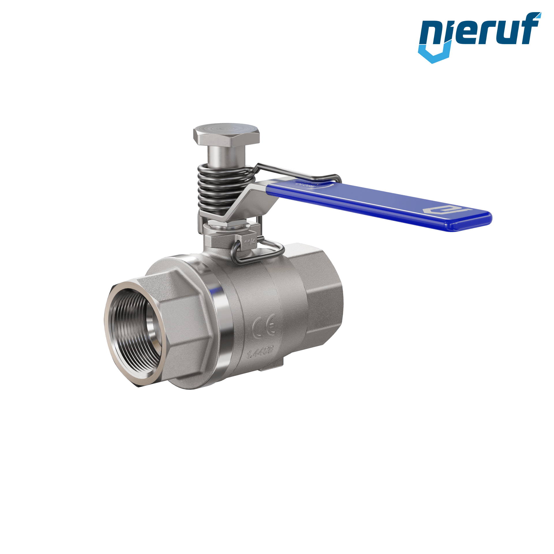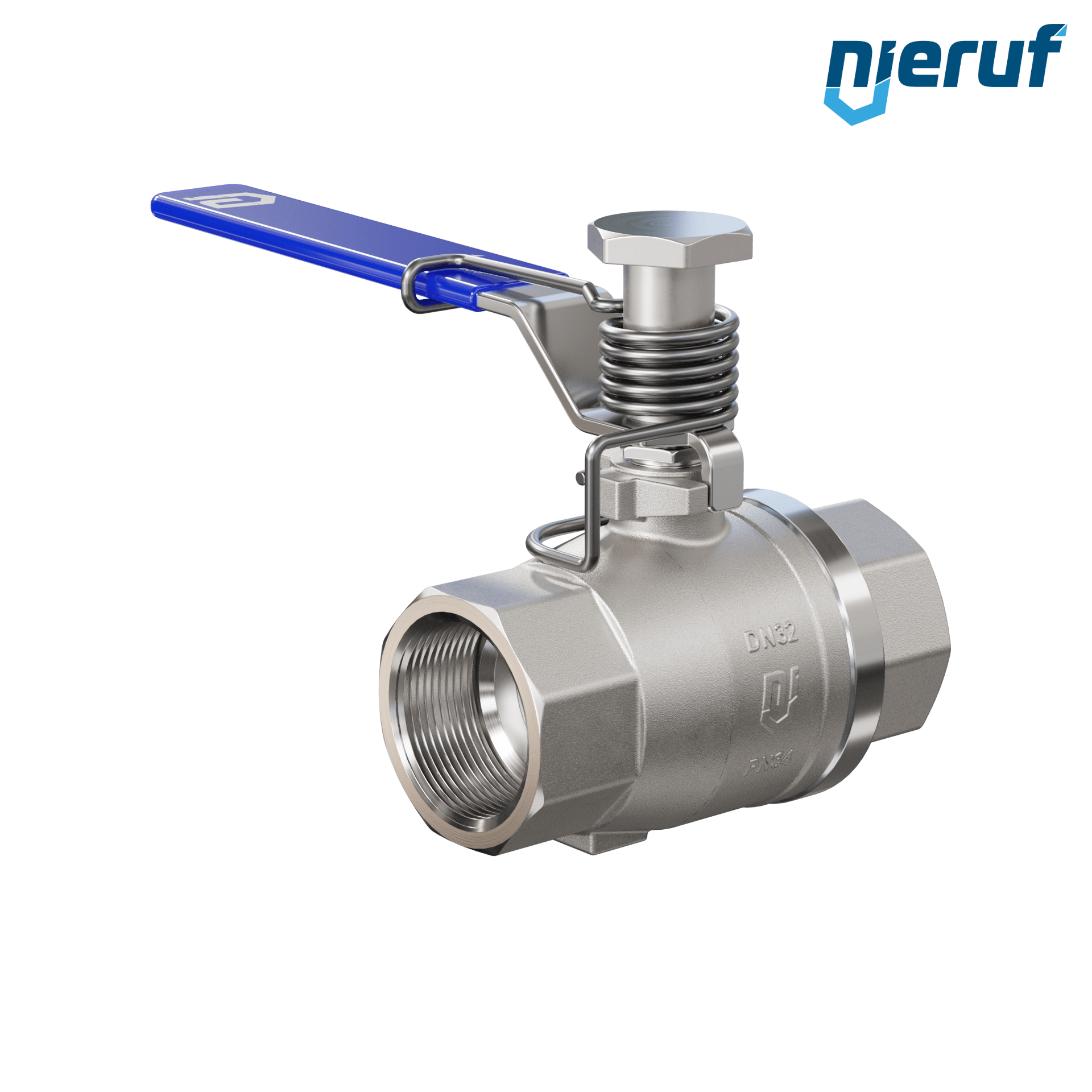 Kugelhahn mit Federrückstellung DN32 - 1 1/4" Zoll voller Durchgang Dichtungen aus PTFE für flüssige & gasförmige Medien Edelstahl 1.4408