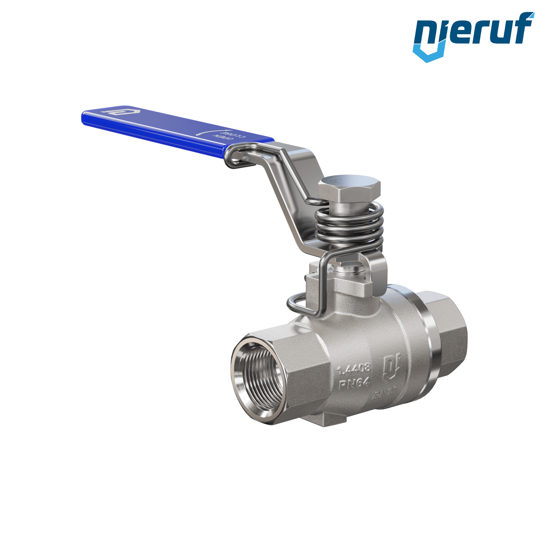 Kugelhahn mit Federrückstellung DN15 - 1/2" Zoll voller Durchgang Dichtungen aus PTFE für flüssige & gasförmige Medien Edelstahl 1.4408