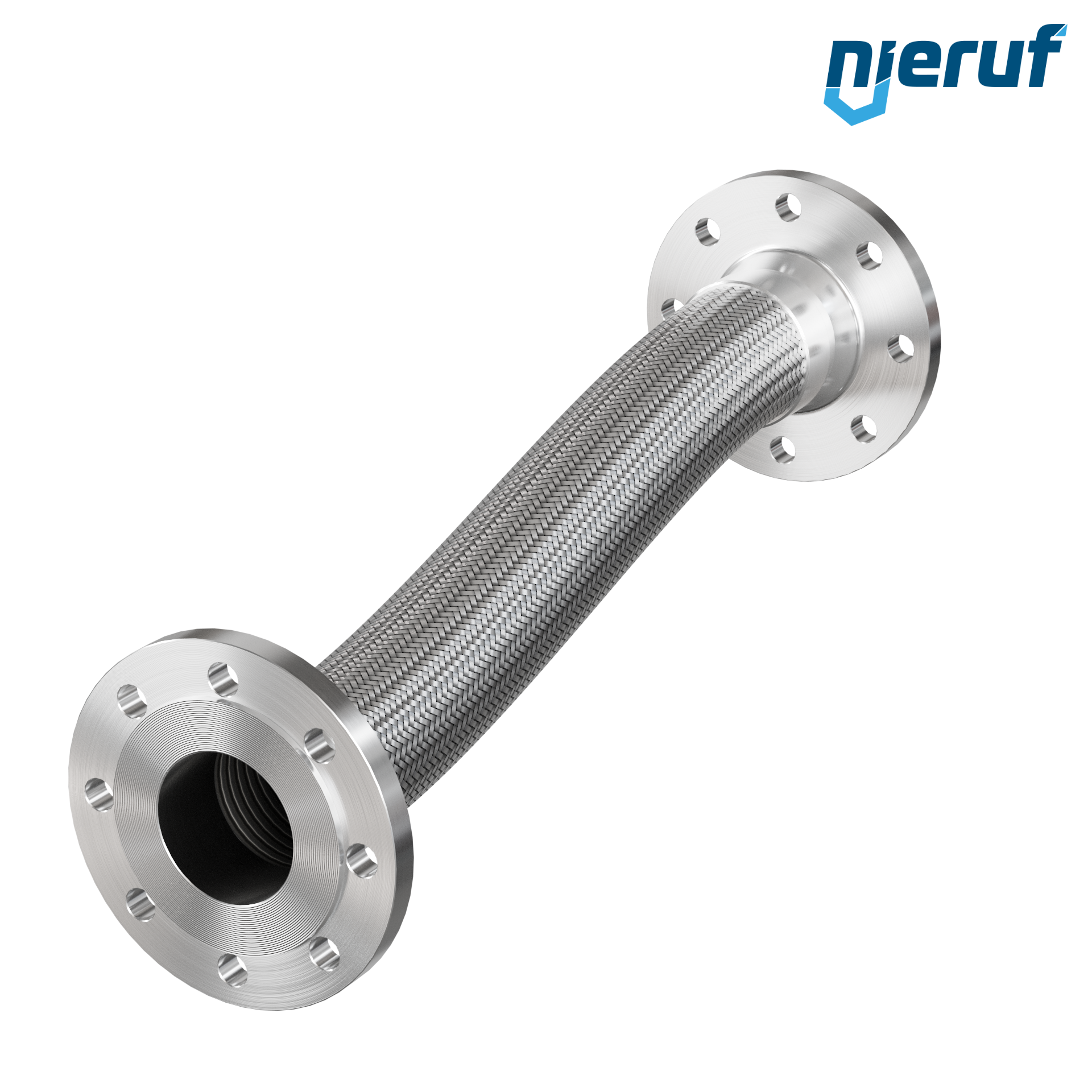 Edelstahlwellschlauch mit Festflansch beiderseits EN 1092-01 Typ 11 PN 16 und Einfachumflechtung in Nennweite DN80 - 3" Zoll mit 1000 mm Länge und 16 bar max. Betriebsdruck
