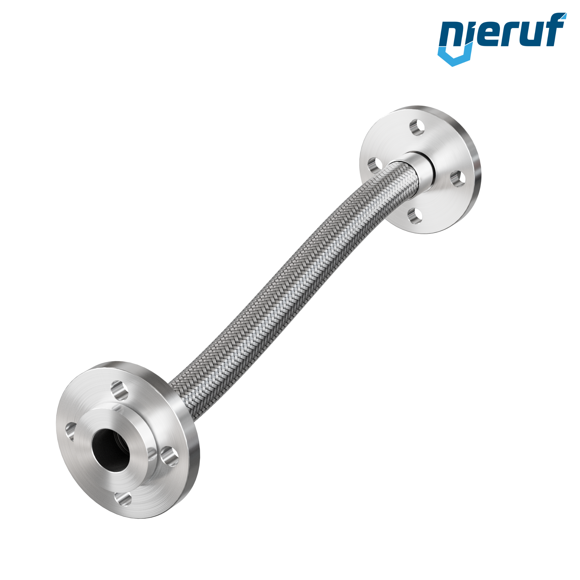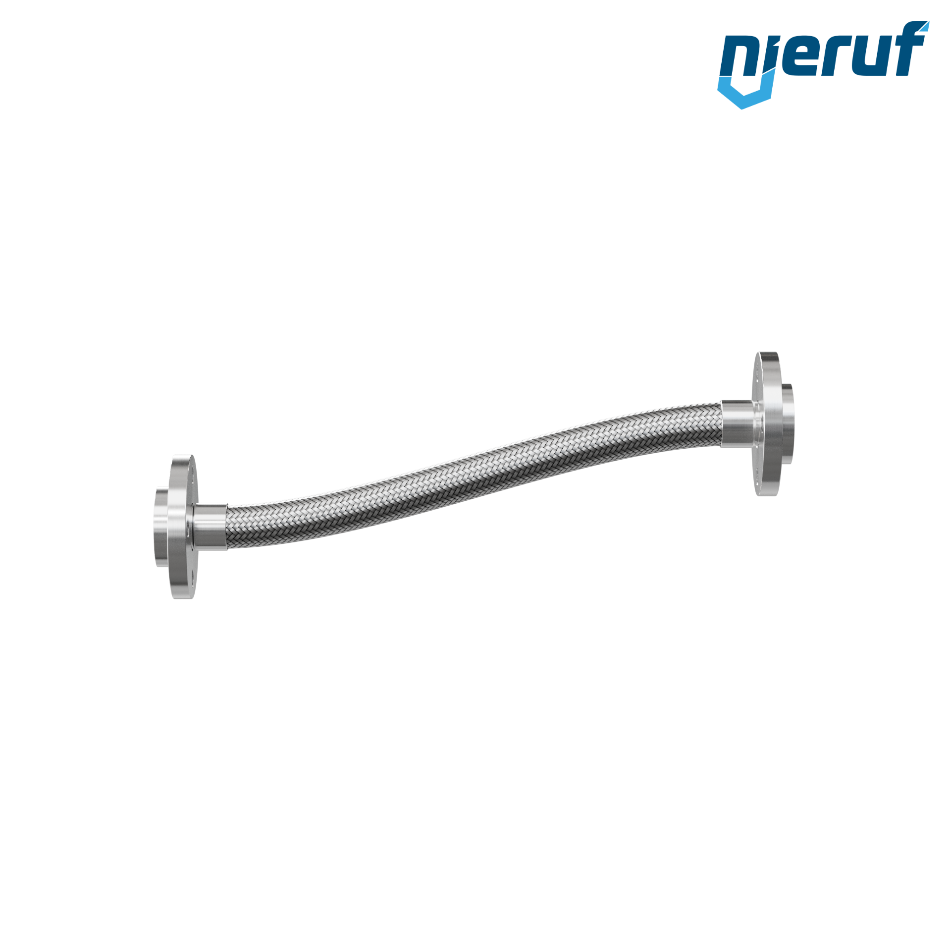 Edelstahlwellschlauch mit Losflansch beiderseits EN 1092-01 Typ 02 PN 40 mit Bund und Einfachumflechtung in Nennweite DN32 - 1 1/4" Zoll mit 1000 mm Länge und 35 bar max. Betriebsdruck