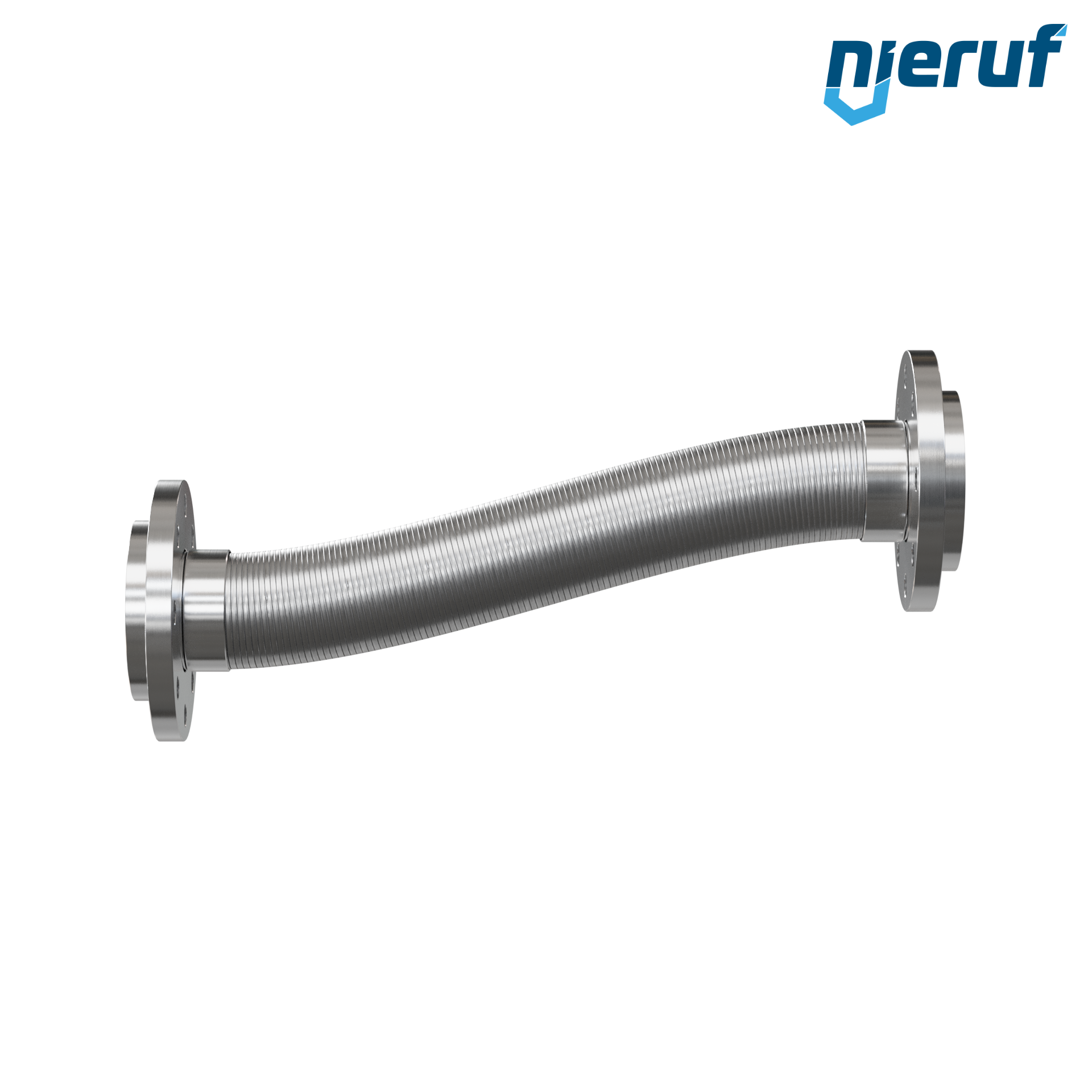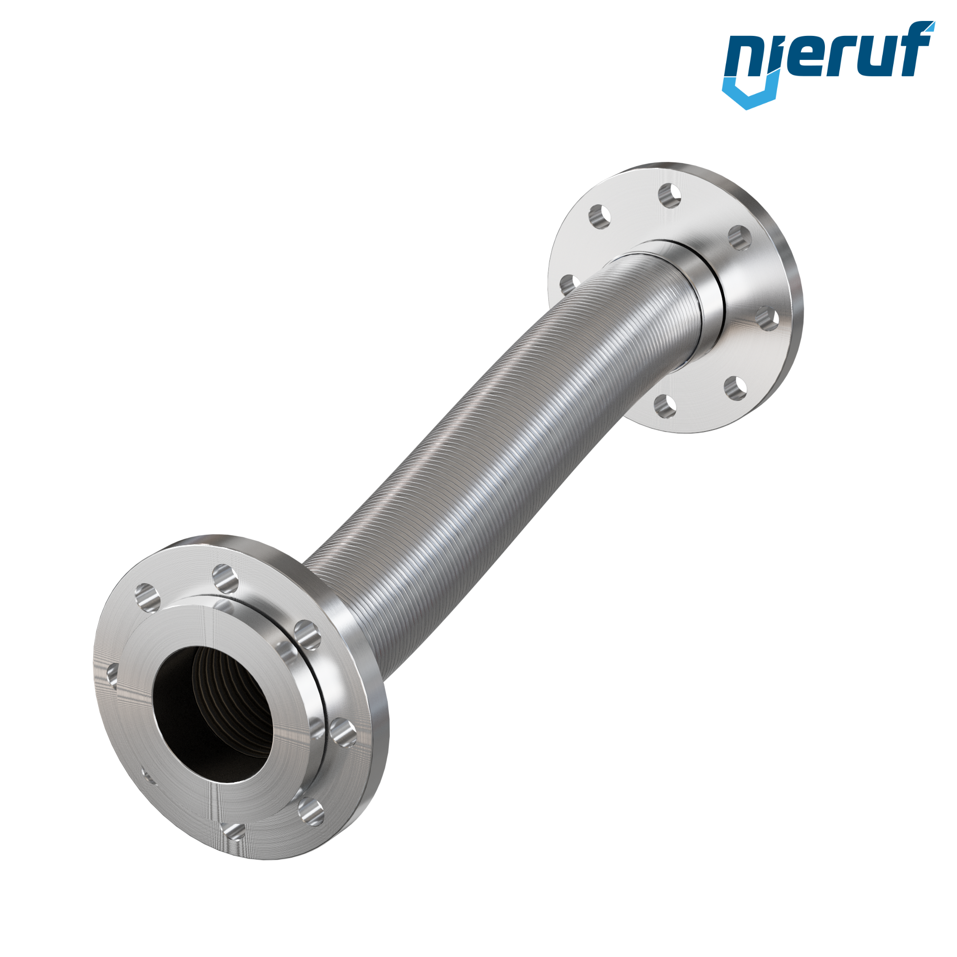 Edelstahlwellschlauch mit Losflansch beiderseits EN 1092-01 Typ 02 PN 40 mit Bund und Zweifachumflechtung in Nennweite DN80 - 3" Zoll mit 500 mm Länge und 25 bar max. Betriebsdruck