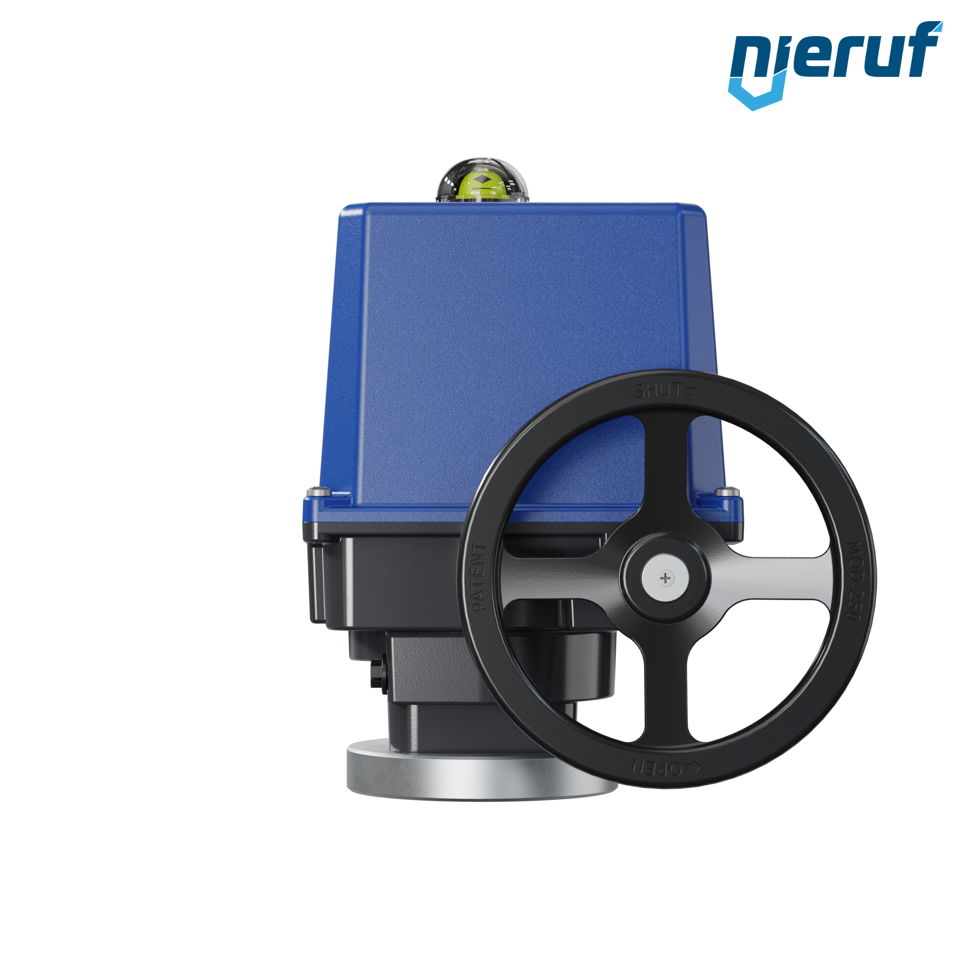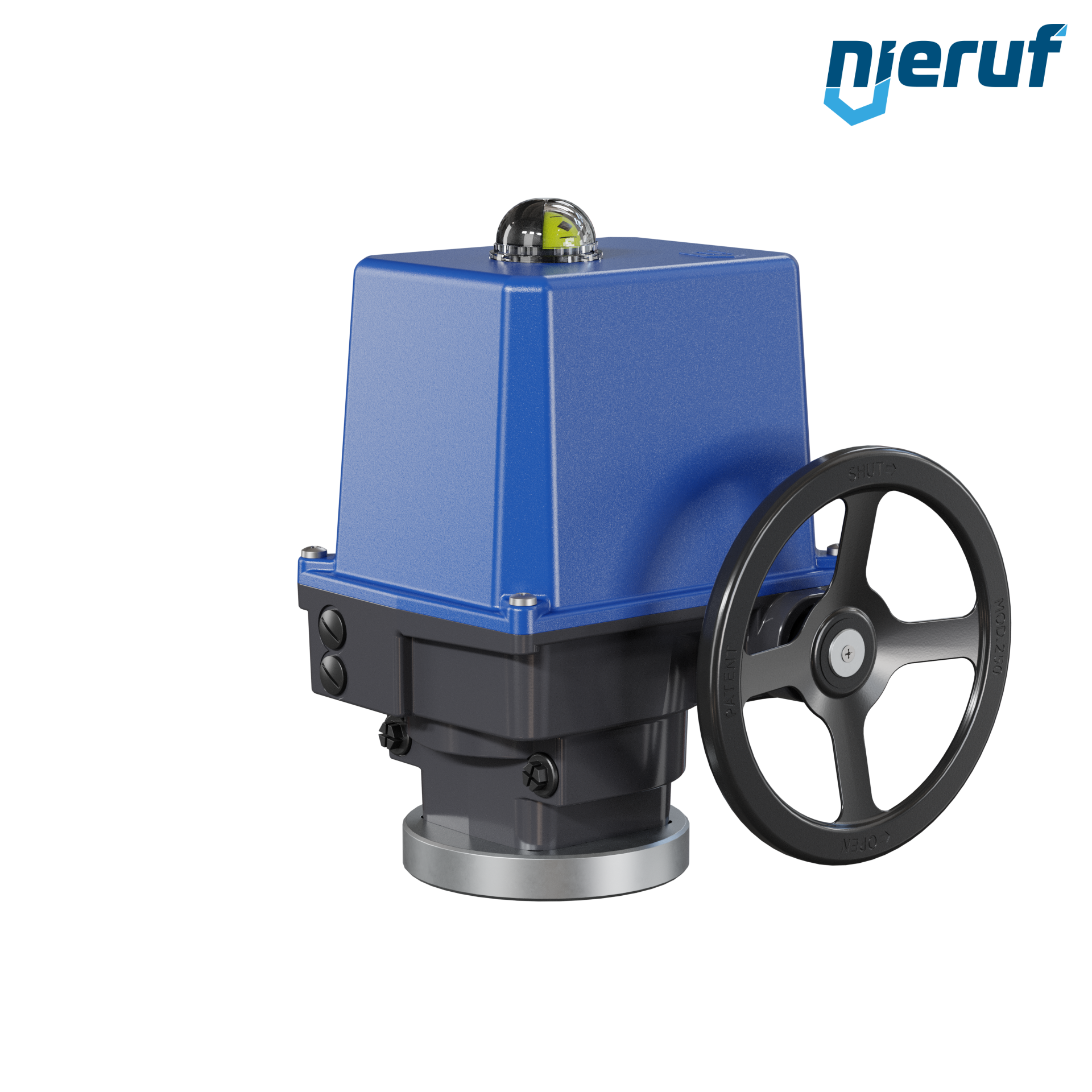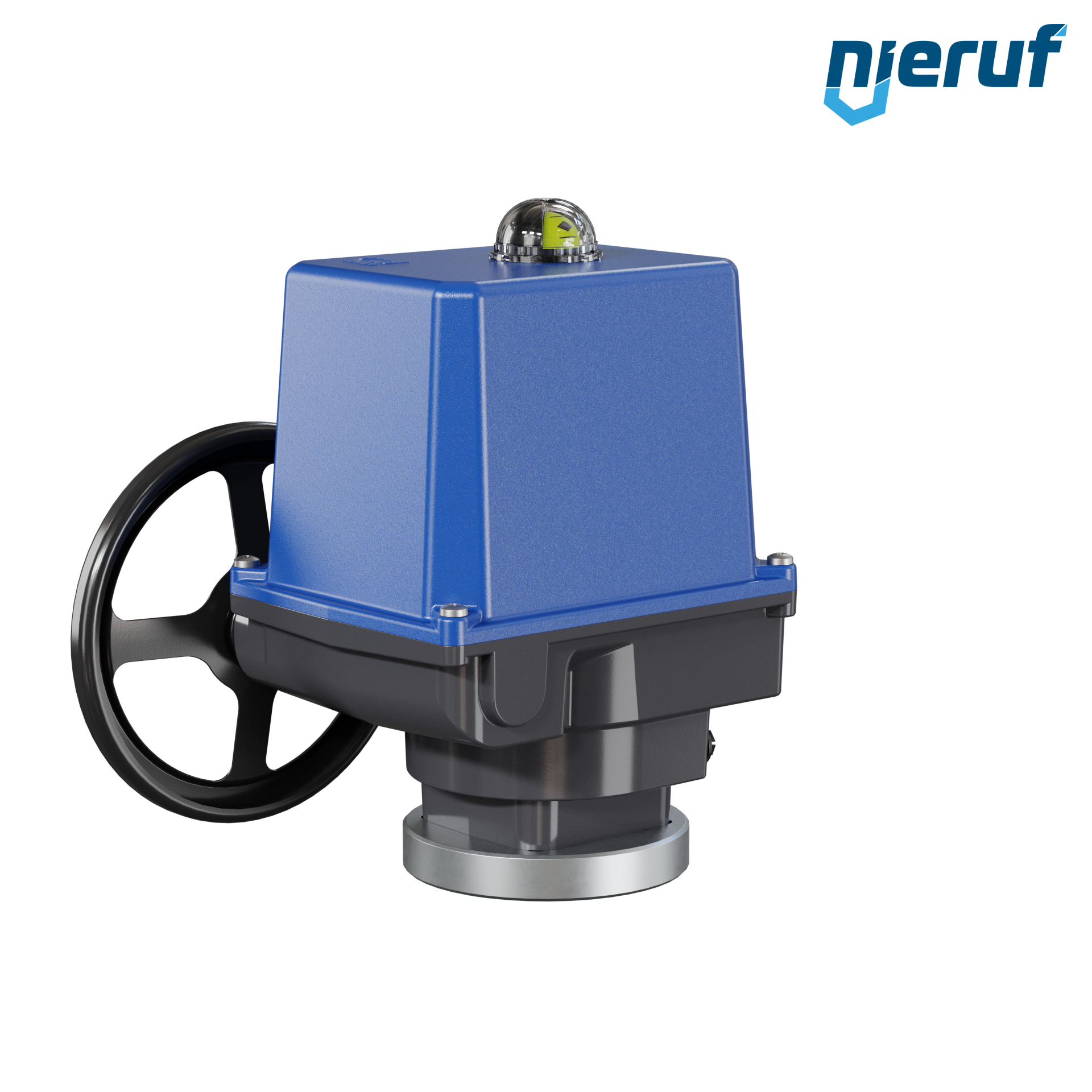 Kompakter, elektrischer Schwenkantrieb für den Steuer- und Regelbetrieb. 90° Schwenkwinkel mit optischer Stellungsanzeige und Handrad, automatische 1-Tasten-Inbetriebnahme.