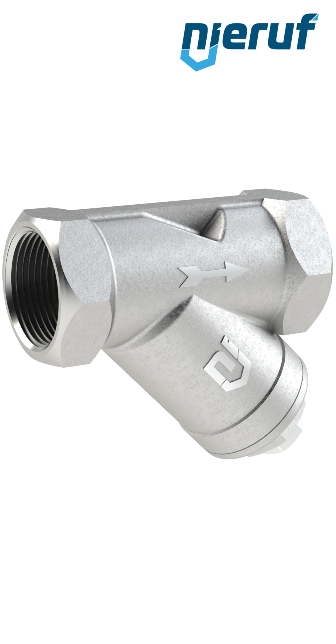 Gewinde-Schmutzfänger aus Edelstahl in Y-Bauart mit Verschlusstopfen und herausnehmbarem Edelstahlfilter, horizontaler oder vertikaler Einbau.