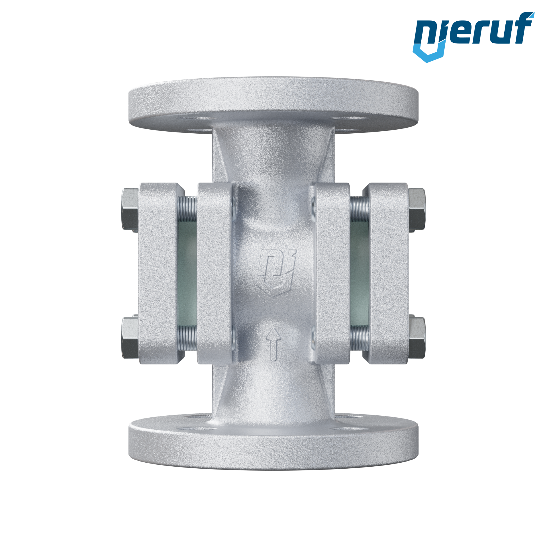 Flansch Schauglas DN32 - 1 1/4" Zoll Grauguss GG25 Typ FS01 Natron-Kalk-Glas Graphit max 16 bar Version mit Klappe