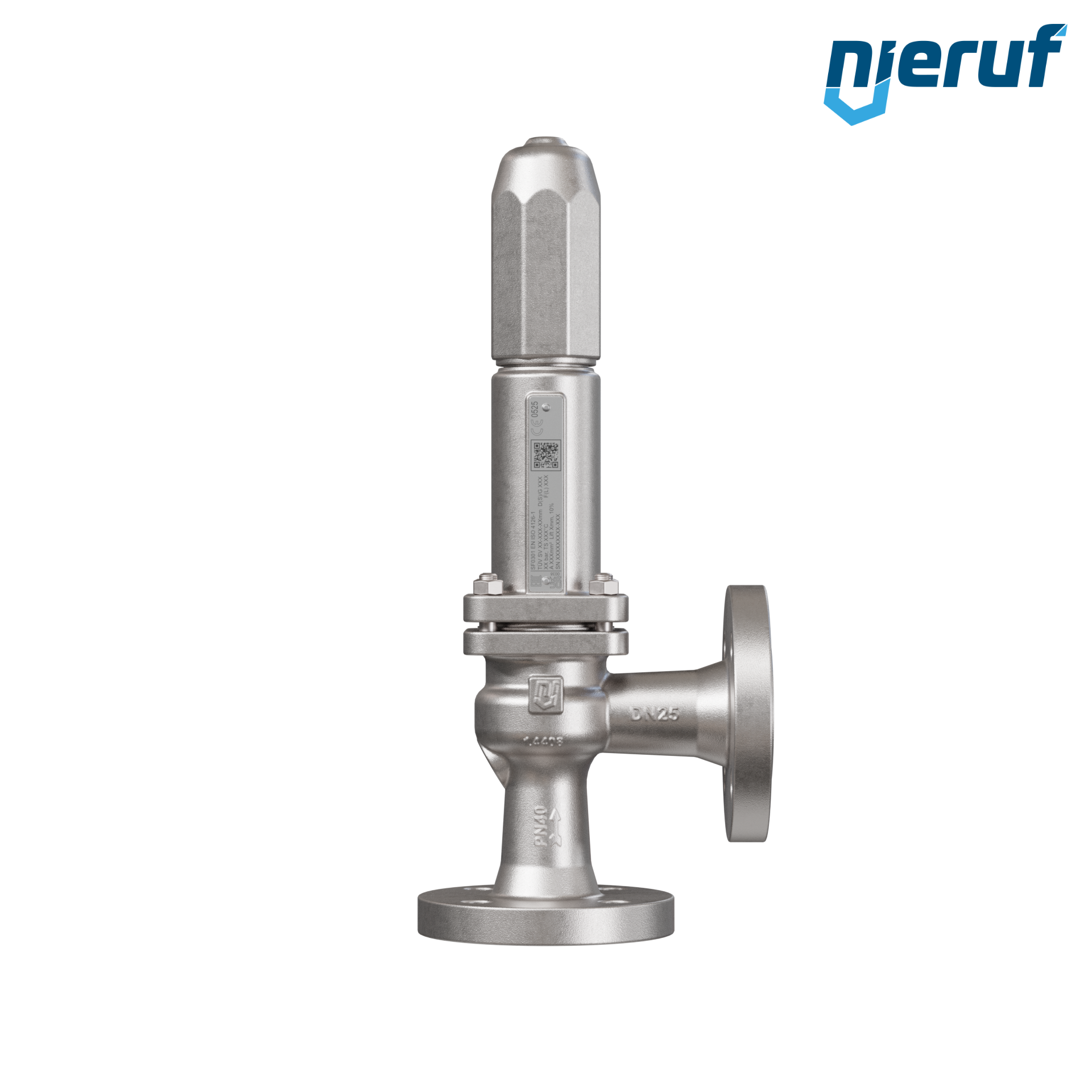 Flansch-Sicherheitsventil Eingang DN25 Ausgang DN25 für flüssige und gasförmige Medien, aus Edelstahl 1.4408 Dichtung EPDM Druck 0,5 bis max. 40 bar