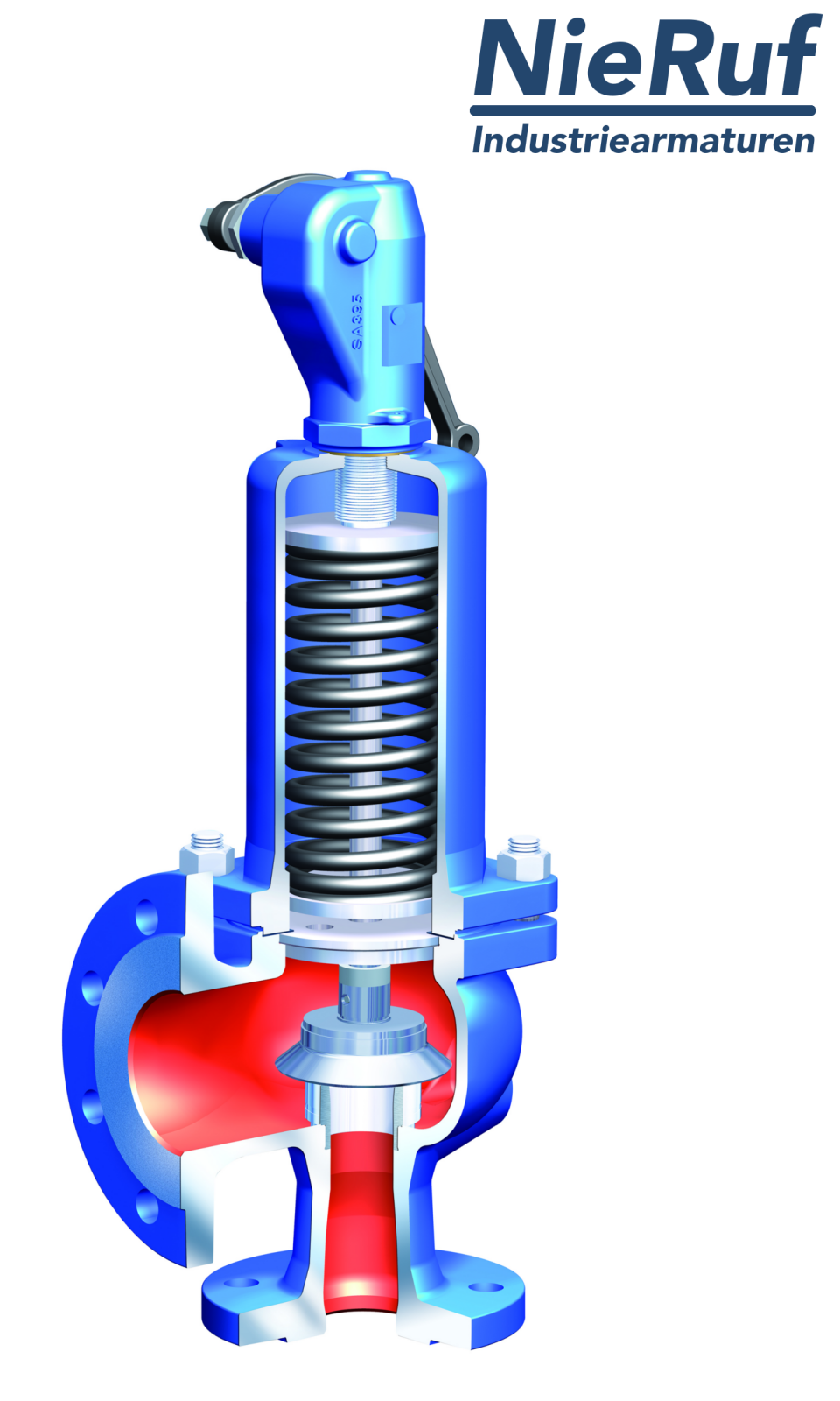 Flansch-Sicherheitsventil DN80 SF03 für flüssige und gasförmige Medien aus Edelstahl 1.4408 Dichtung EPDM Druck 0,5 bis max. 30 bar mit Hebel