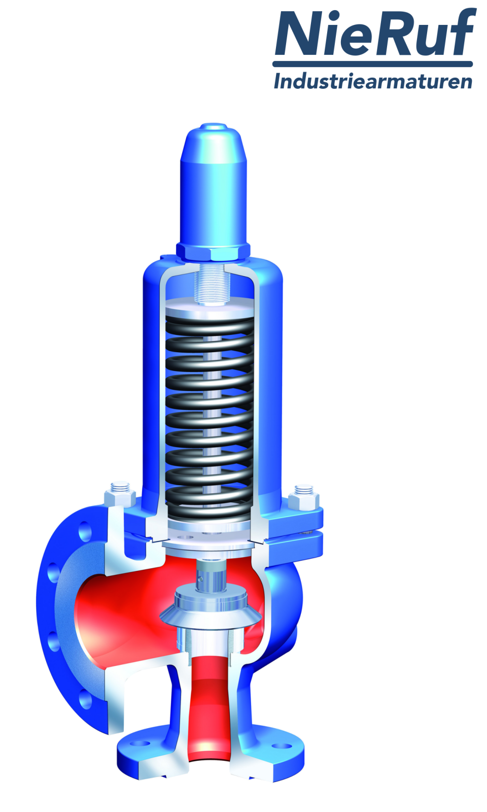 Flansch-Sicherheitsventil DN100/DN100 Druck 0,5 bis max. 16 bar ohne Hebel für flüssige und gasförmige Medien aus Grauguss EN-JL1040 Dichtung FPM