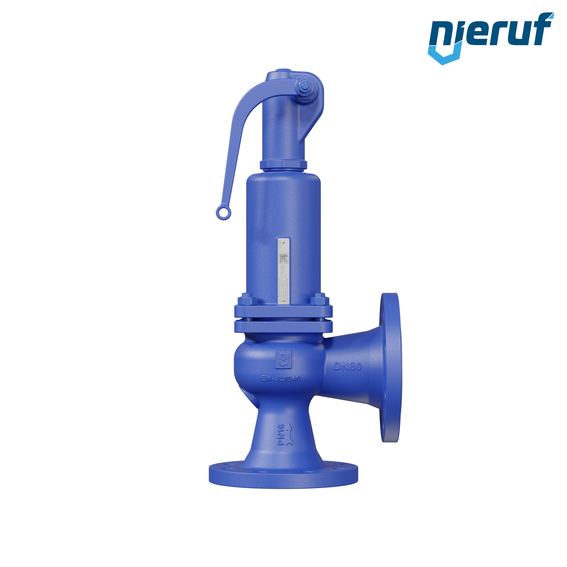 Flansch-Sicherheitsventil DN80/DN80 geschlossene Anlüftung und geschlossene Haube aus Grauguss EN-JL1040 Einstelldruck 0,2 bis max. 16 bar mit Hebel
