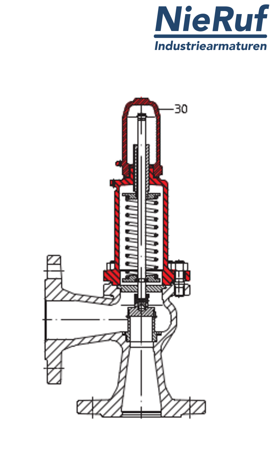 Flansch-Sicherheitsventil DN32/DN32 SF0201, Stahlguss 1.0619+N EPDM, ohne Hebel