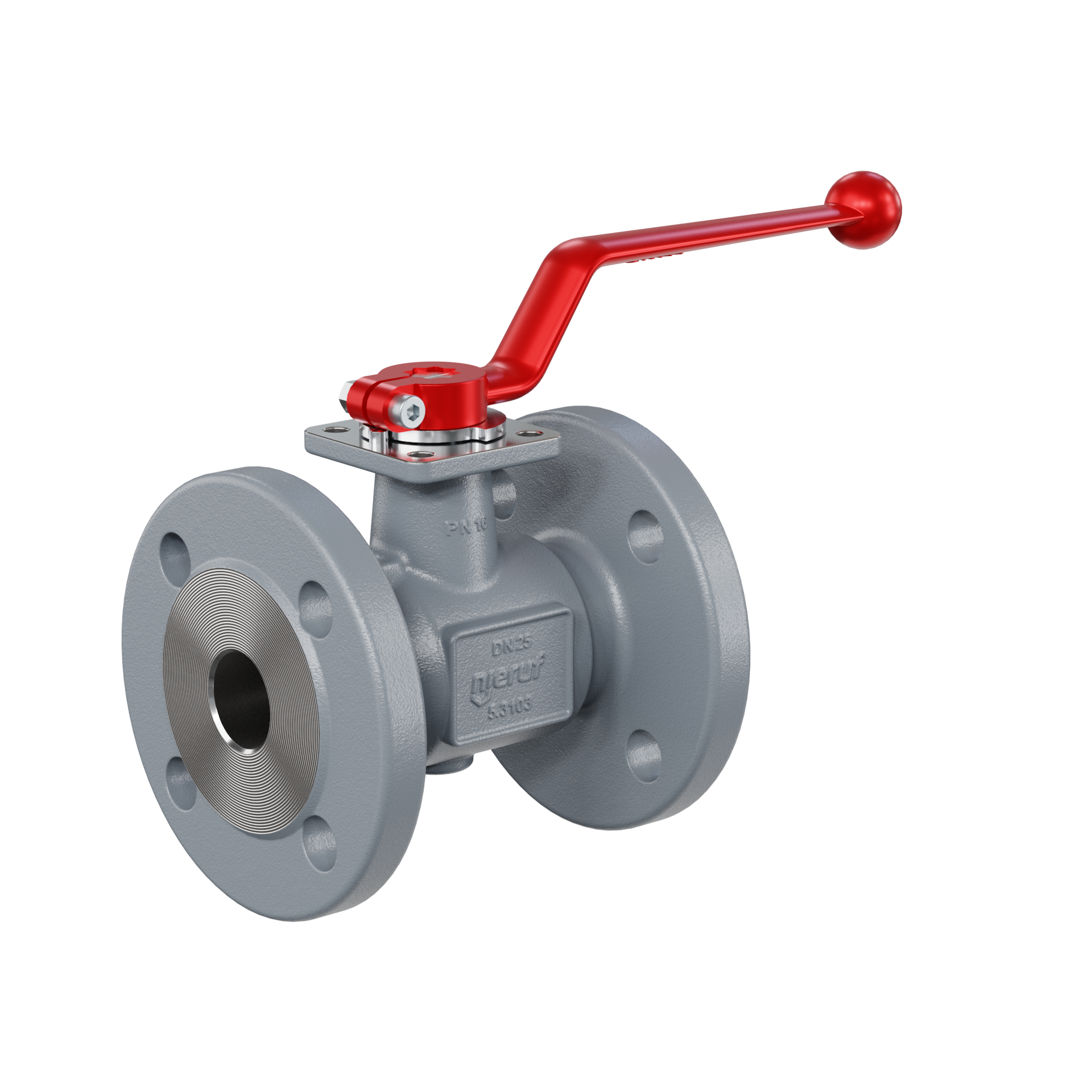 Flanschkugelhahn DN25 FK01 Gehäuse Sphäroguss GJS 400-18 Kugel Stahl verchromt Dichtung PTFE / GF für flüssige & gasförmige Medien