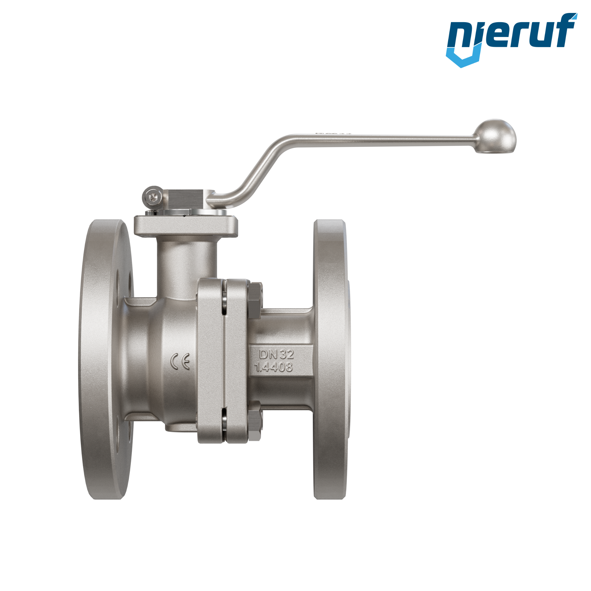 Trinkwasser-Flanschkugelhahn DN32 PN16 FK05 Gehäuse Edelstahl 1.4408 Kugel Edelstahl 1.4408 Dichtung PTFE für Trinkwasser