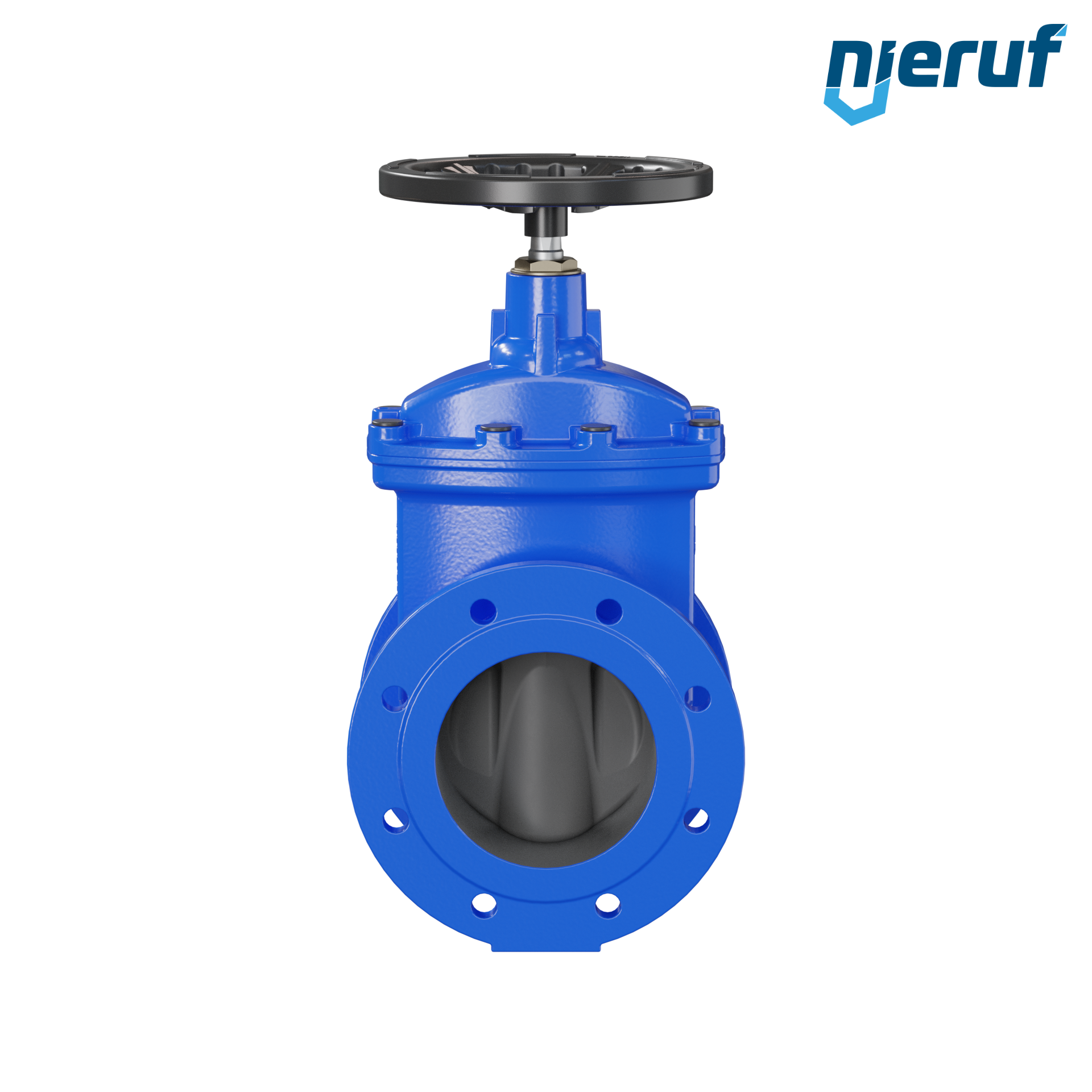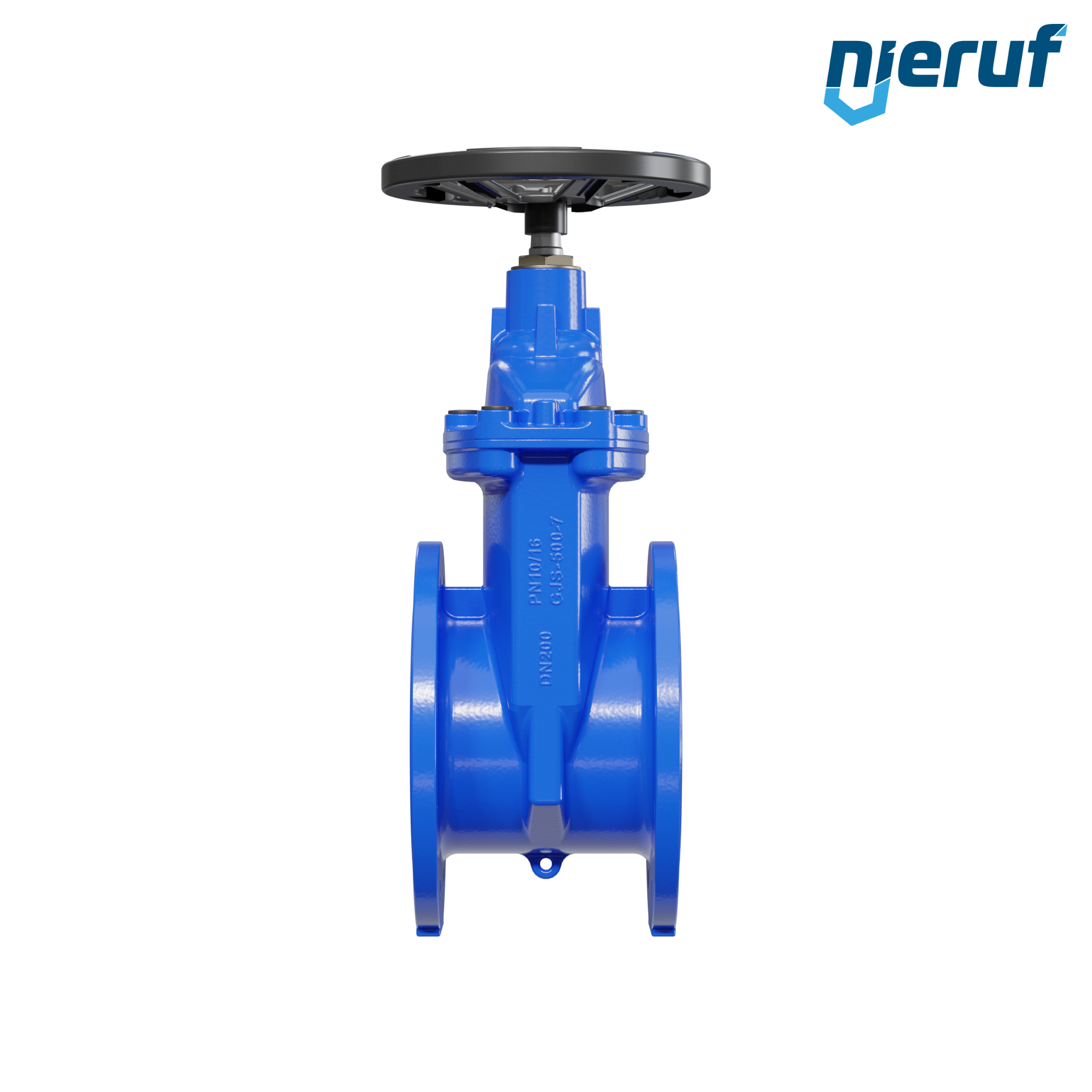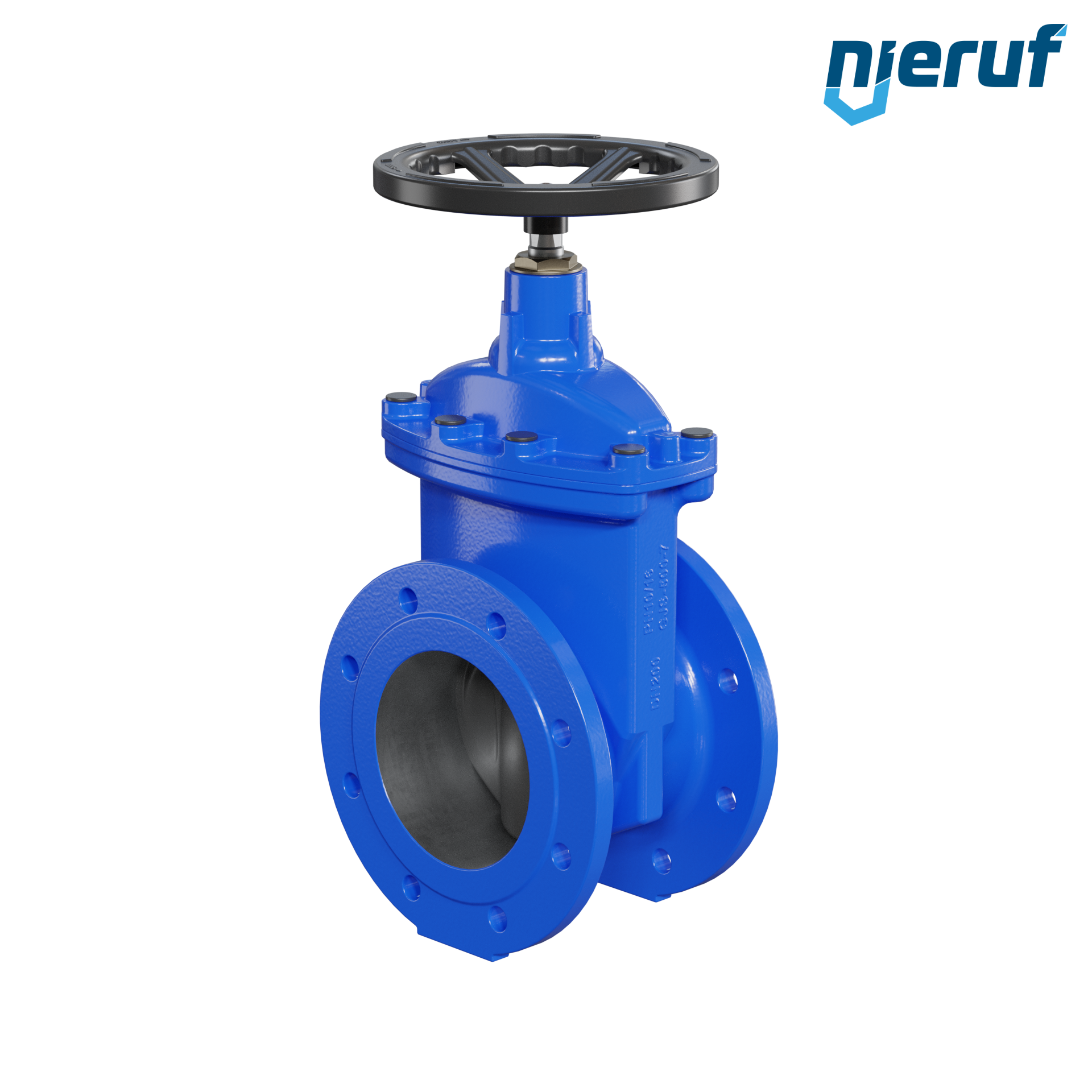 Keilflachschieber in Durchgangsform mit Flanschanschluss und nicht steigender Spindel sowie nicht steigendem Handrad.