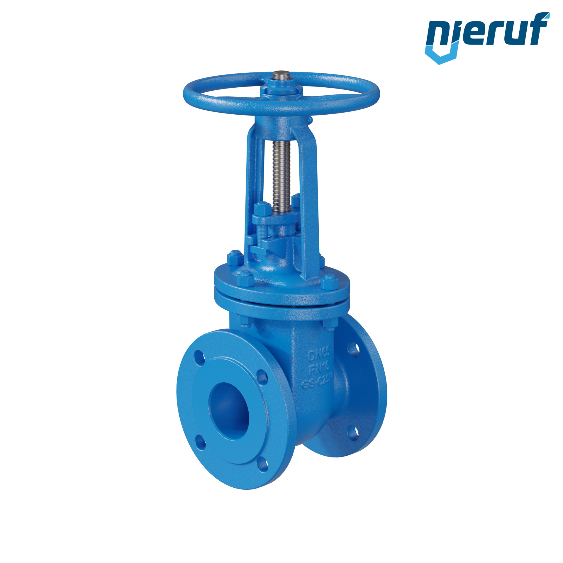 Keilflachschieber in Durchgangsform mit Flanschanschluss und steigender Spindel sowie nicht steigendem Handrad. Mit TA-Luft 2021 und ATEX 2014/34/EU Zulassung.