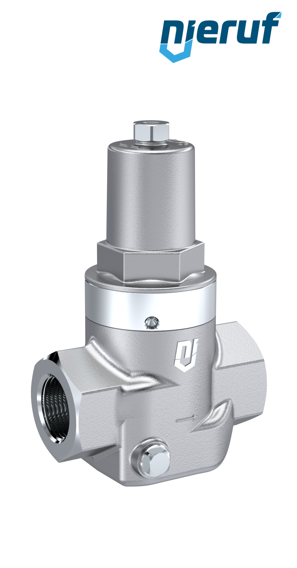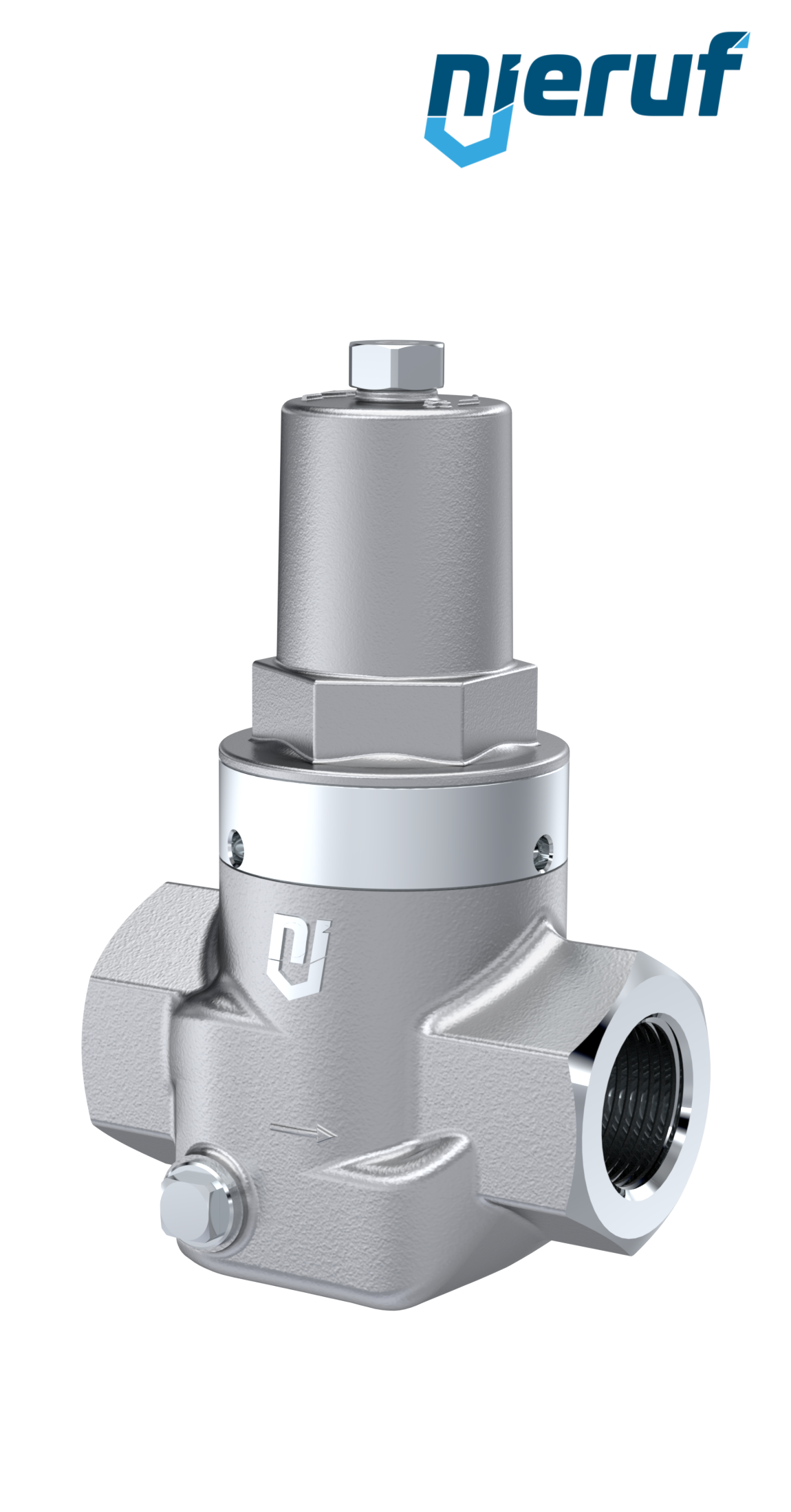 Kolben-Druckminderer 1" Zoll Innengewinde aus Edelstahl Dichtung FPM / FKM für flüssige & neutrale gasförmige Medien, Einstelldruck 2,0 - 20,0 bar