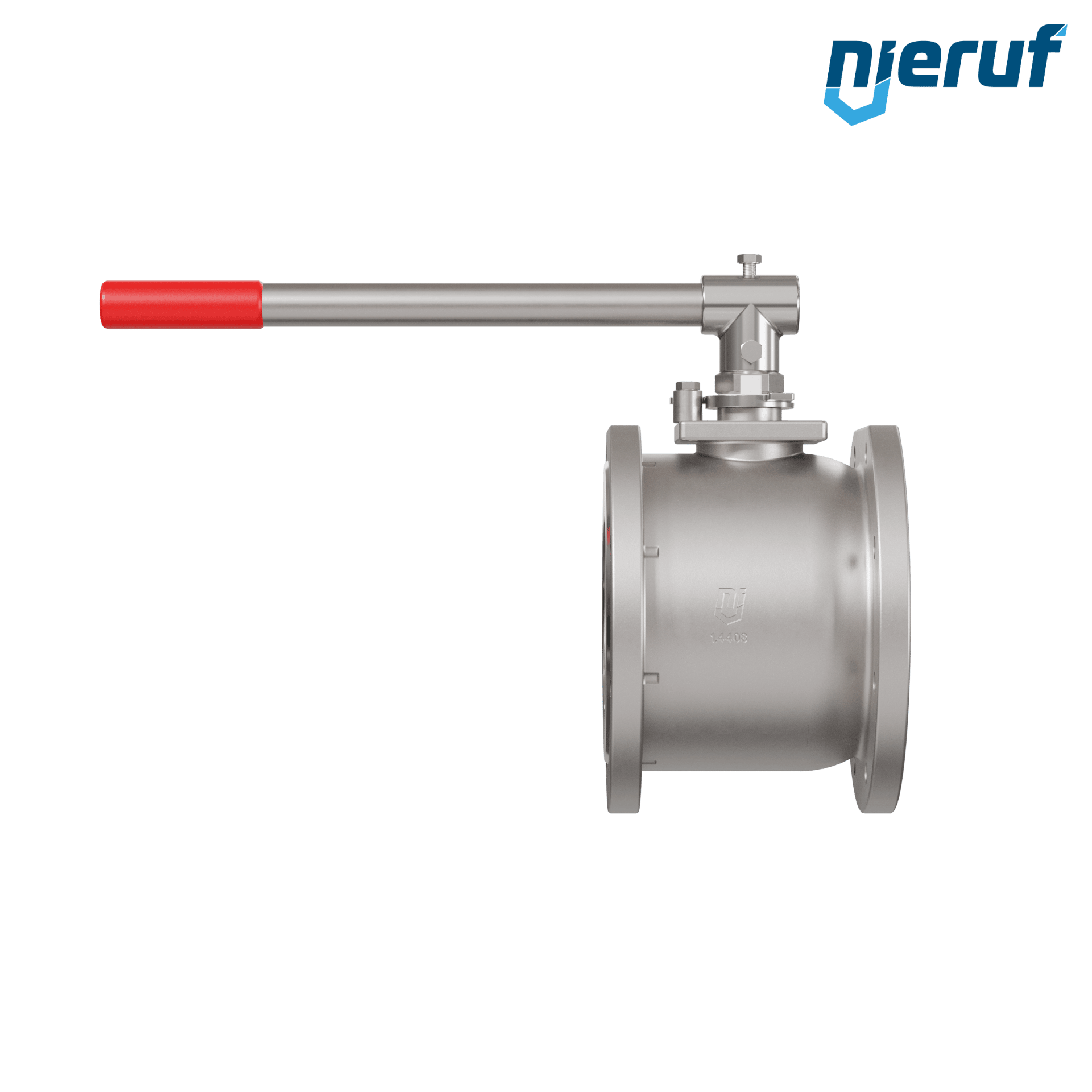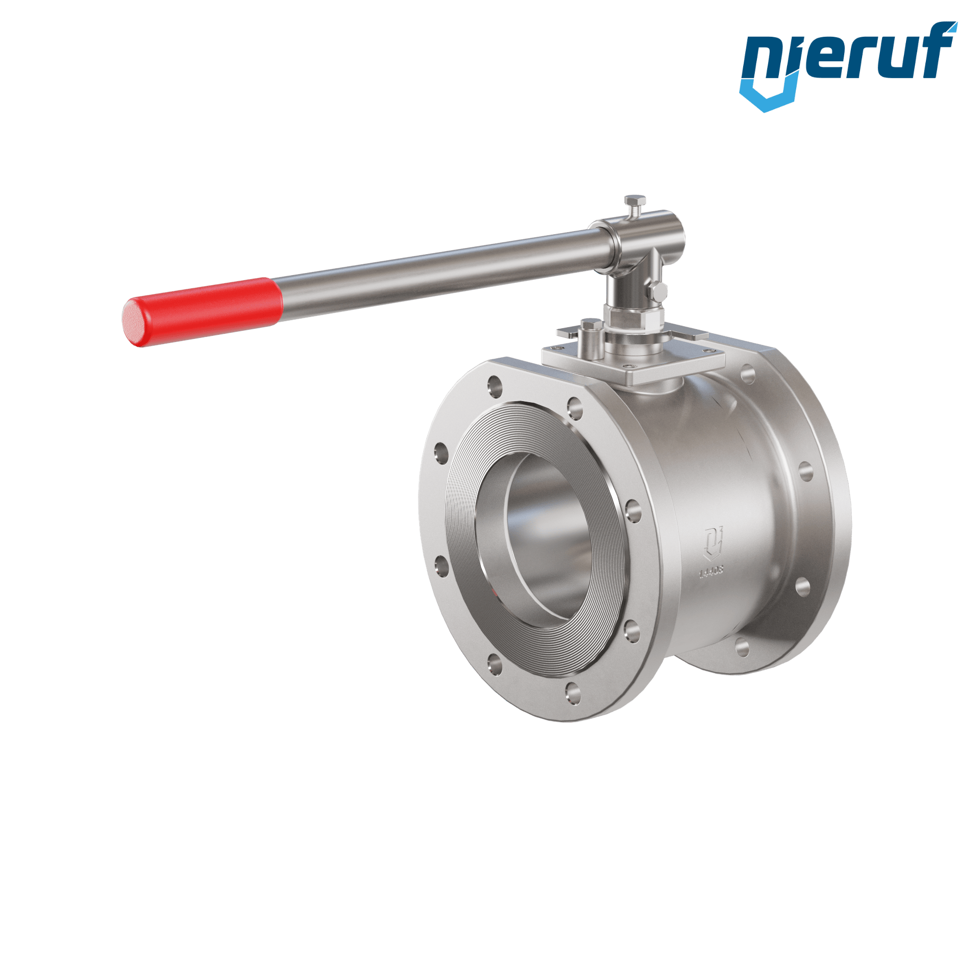 Kompakt-Kugelhahn aus Edelstahl mit Edelstahl Hebel und Kugel. Flansche mit metrischer durchgehender Bohrung. Zum Absperren von Systemen.