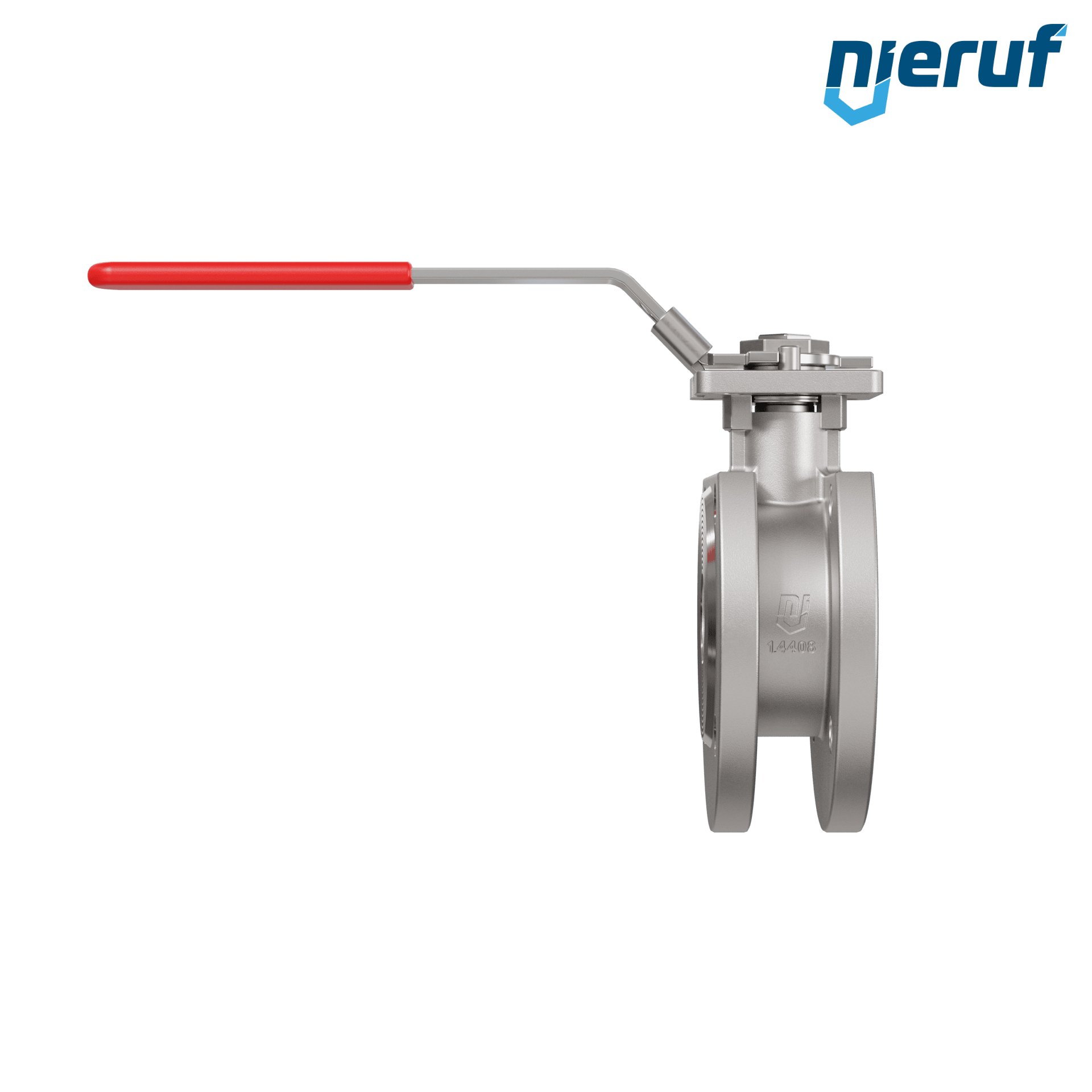 Kompakt-Kugelhahn aus Edelstahl mit Edelstahl Hebel und Kugel. Flansche mit metrischer durchgehender Bohrung. Zum Absperren von Systemen.