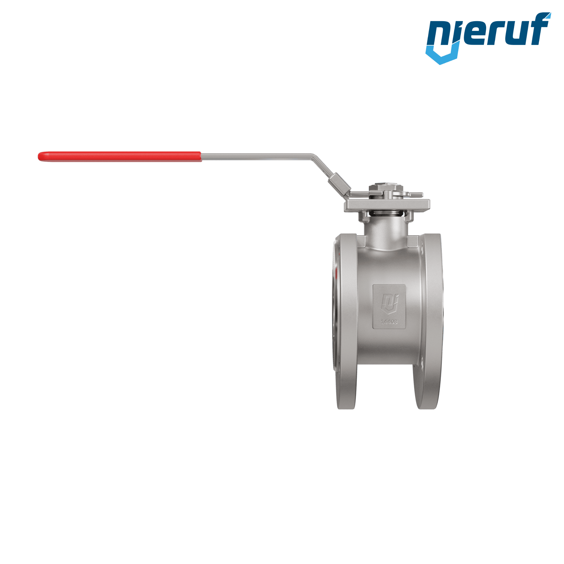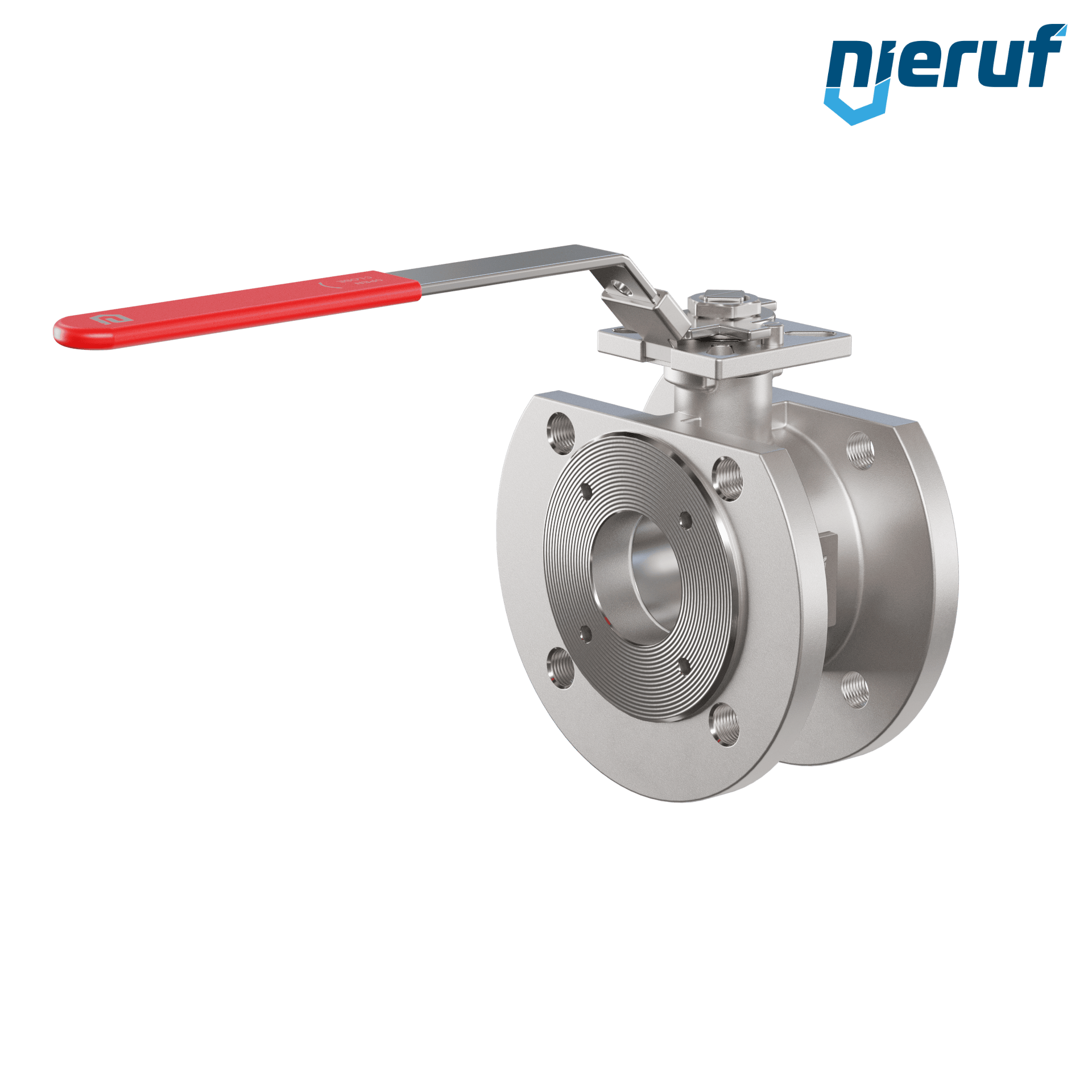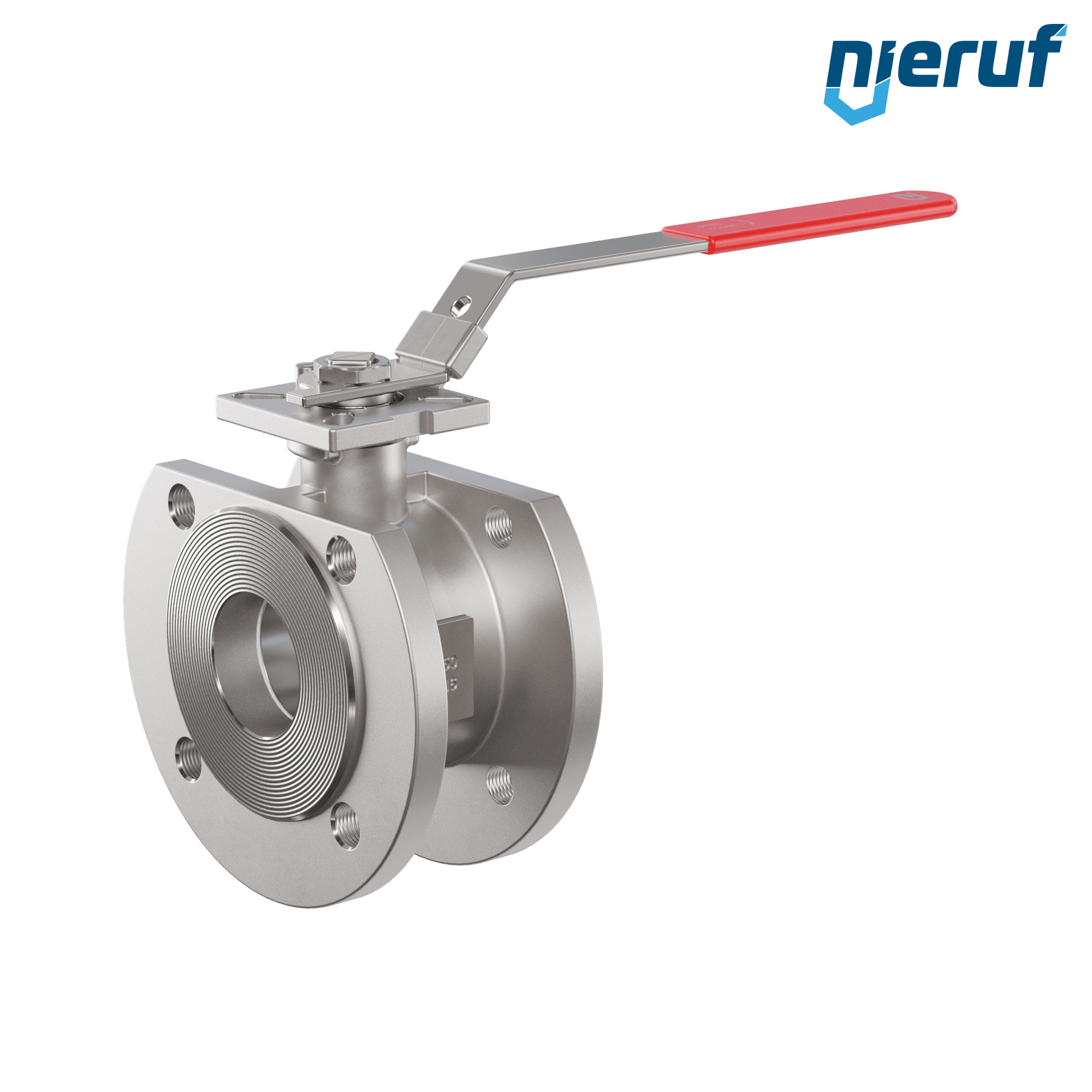 Kompakt-Kugelhahn aus Edelstahl mit Edelstahl Hebel und Kugel. Flansche mit metrischer durchgehender Bohrung. Zum Absperren von Systemen.