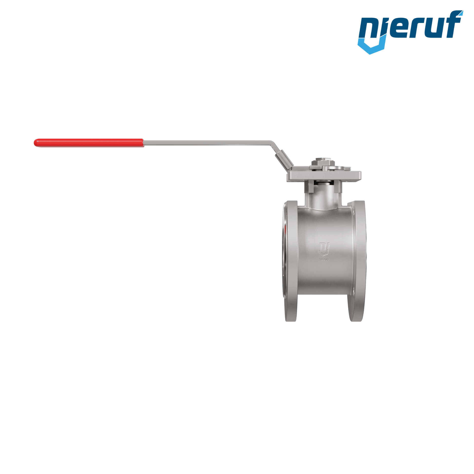 Kompakt-Kugelhahn aus Edelstahl mit Edelstahl Hebel und Kugel. Flansche mit metrischer durchgehender Bohrung. Zum Absperren von Systemen.