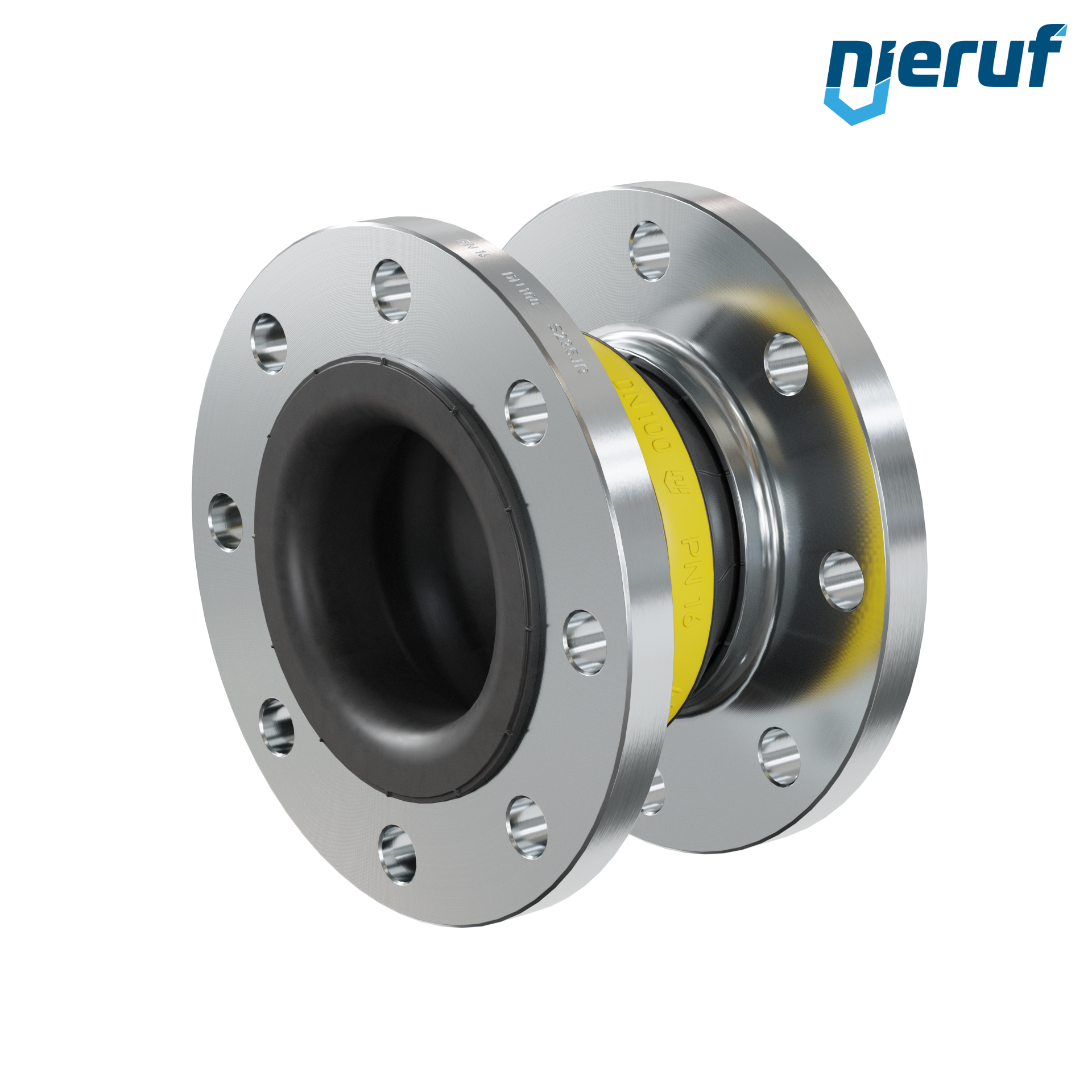 Produktmerkmal: Hochwertiger Gummikompensator mit NBR Dichtung und Stahlflanschen. Der Typ kann um eine PTFE Auskleidung, Vakuumstützringe und andere Optionen auf Anfrage erweitert werden.
