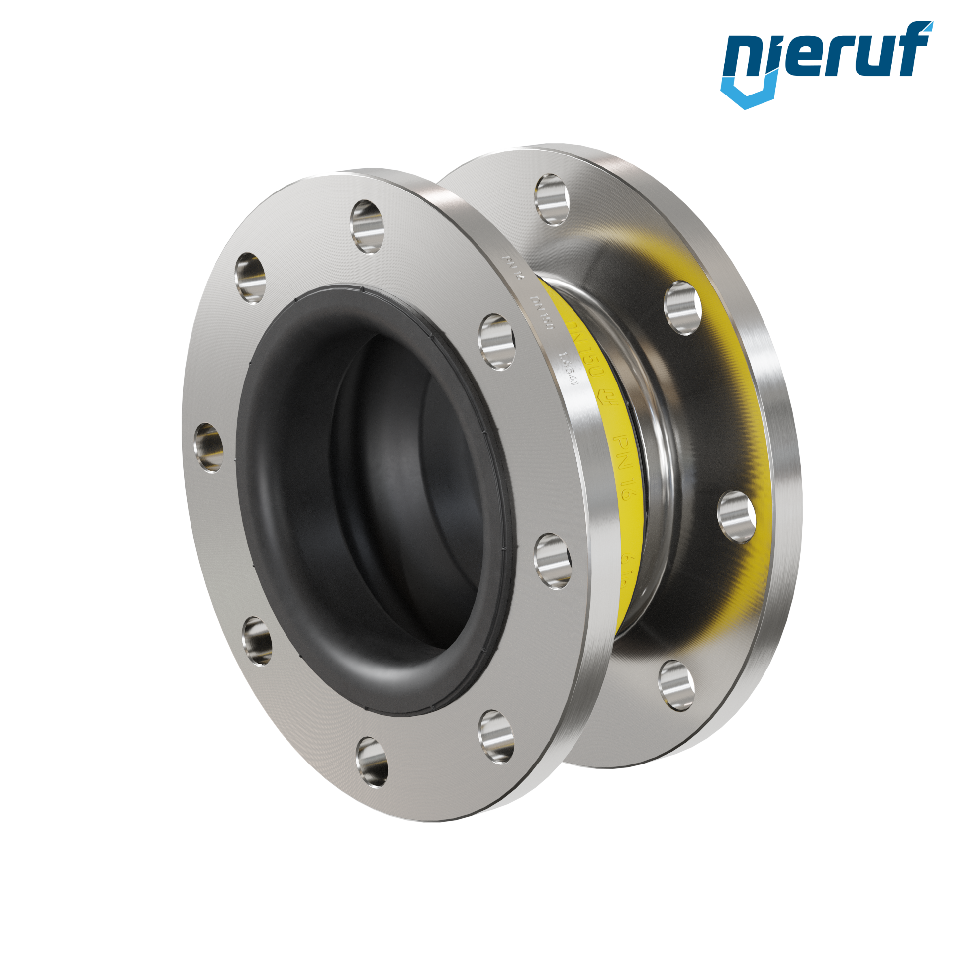 Hochwertiger Gummikompensator mit NBR Dichtung und Edelstahlflanschen. Der Typ kann um eine PTFE Auskleidung, Vakuumstützringe und andere Optionen auf Anfrage erweitert werden.