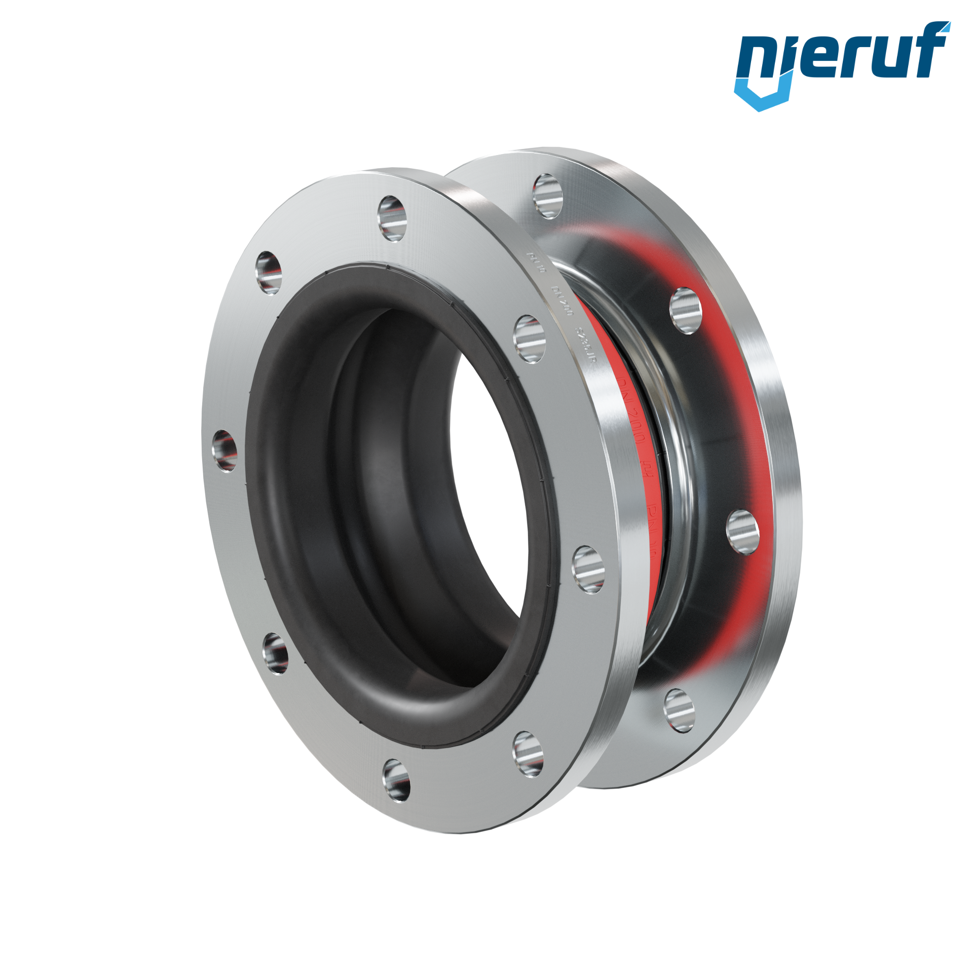 Gummi-Kompensator DN200 mit EPDM-Manschette und Stahlflansch für flüssige, sowie gasförmige Medien (kein Dampf) und Trinkwasser