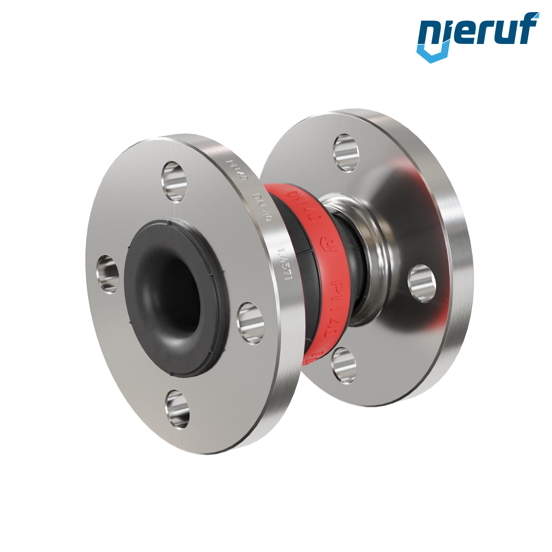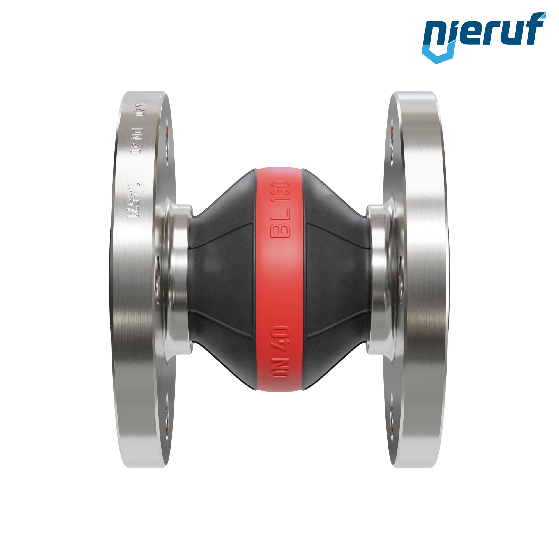 Gummi-Kompensator DN40 mit EPDM-Manschette und Edelstahlflansch für flüssige, sowie gasförmige Medien (kein Dampf) und Trinkwasser