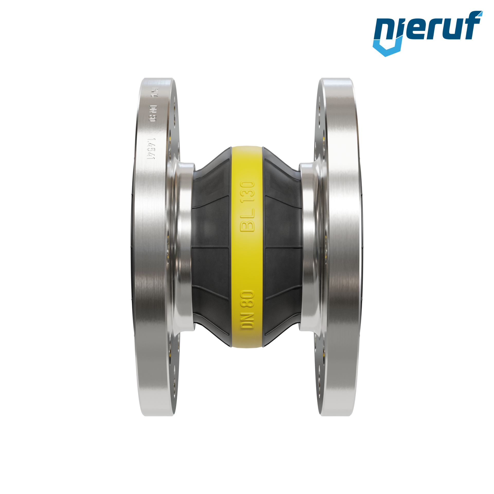 Hochwertiger Gummikompensator mit NBR Dichtung und Edelstahlflanschen. Der Typ kann um eine PTFE Auskleidung, Vakuumstützringe und andere Optionen auf Anfrage erweitert werden.