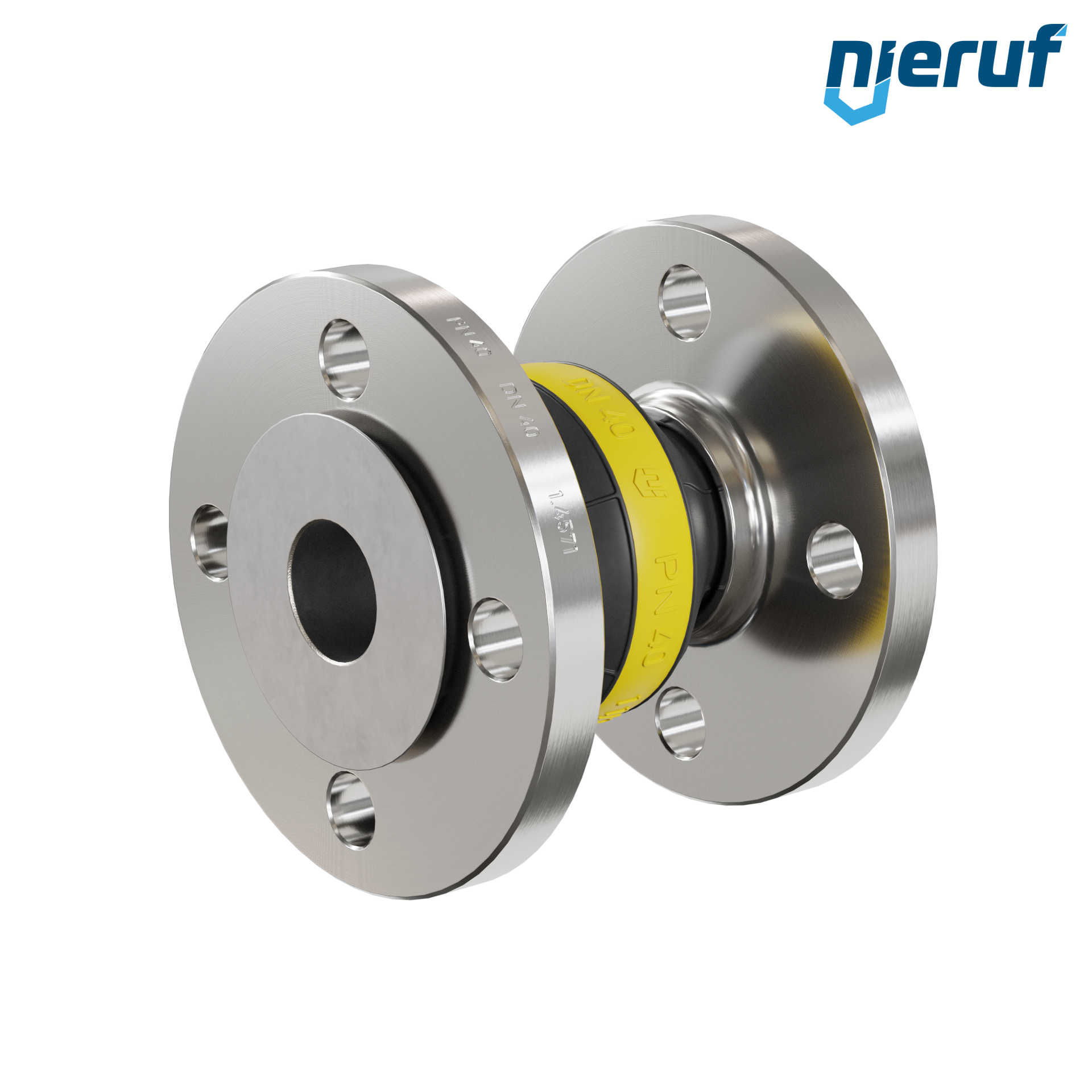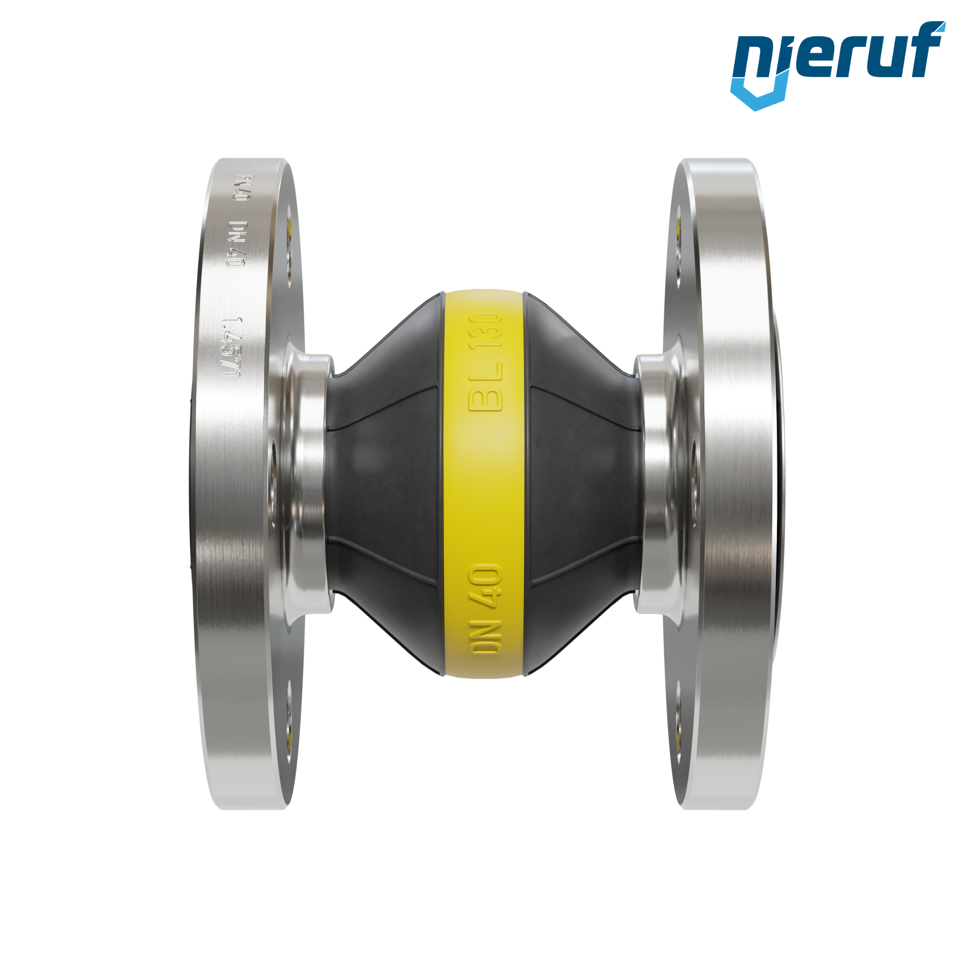 Gummikompensator DN40 Leitblech für flüssige & gasförmige Medien (kein Dampf) mit Edelstahlflansche & NBR Dichtung