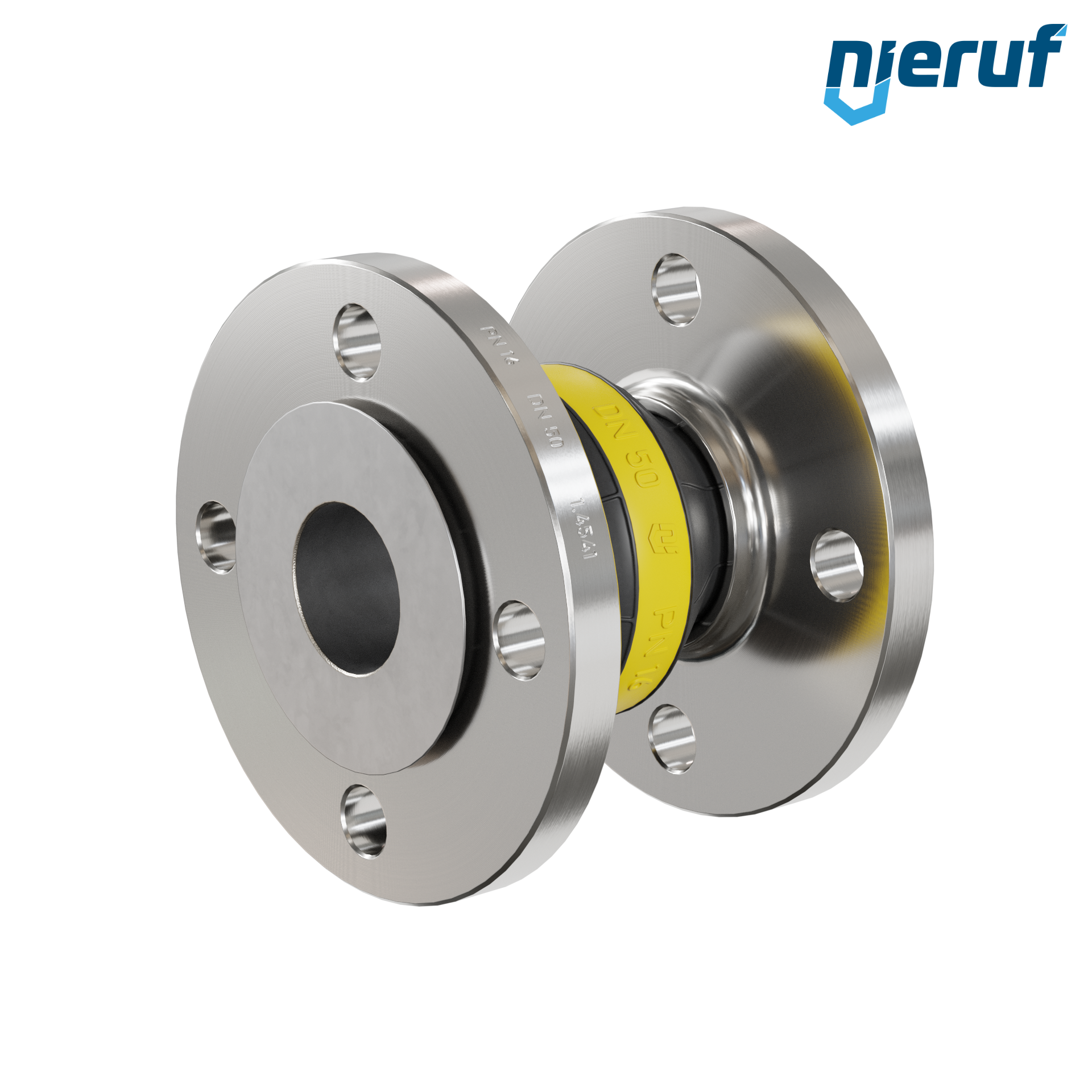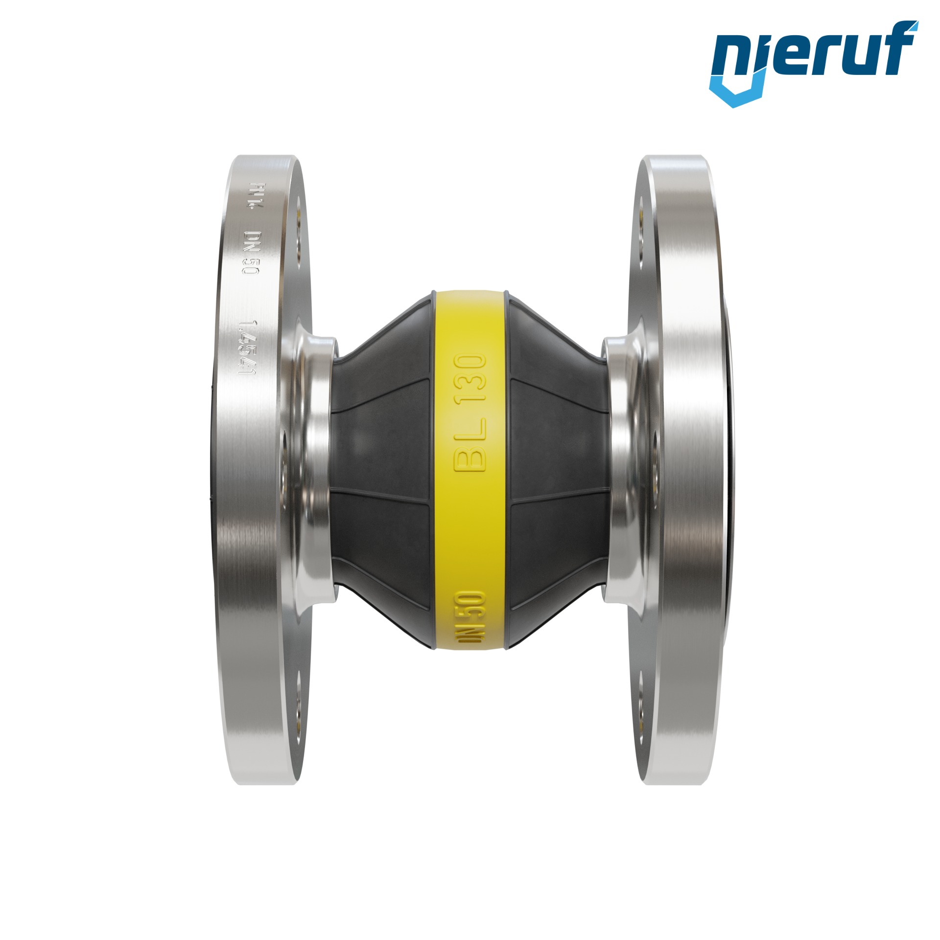 Gummikompensator DN50 Leitblech für flüssige & gasförmige Medien (kein Dampf) mit Edelstahlflansche & NBR Dichtung