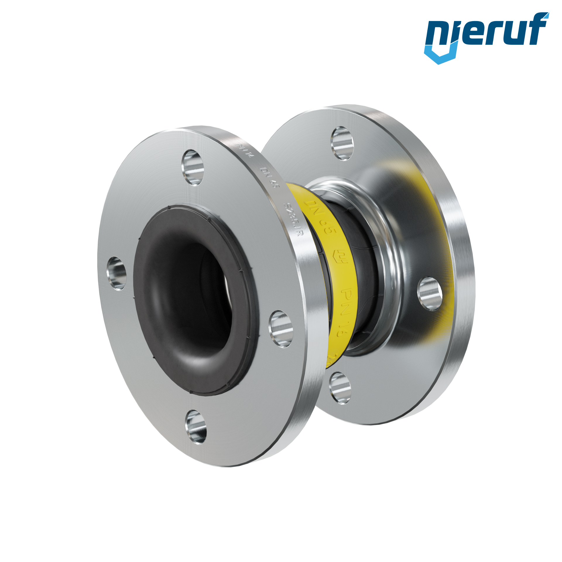 Hochwertiger Gummikompensator mit NBR Dichtung und Stahlflanschen. Zusätzlich ist dieser Kompensator mit Vakuumstützring für höhere Unterdrücke ausgestattet.