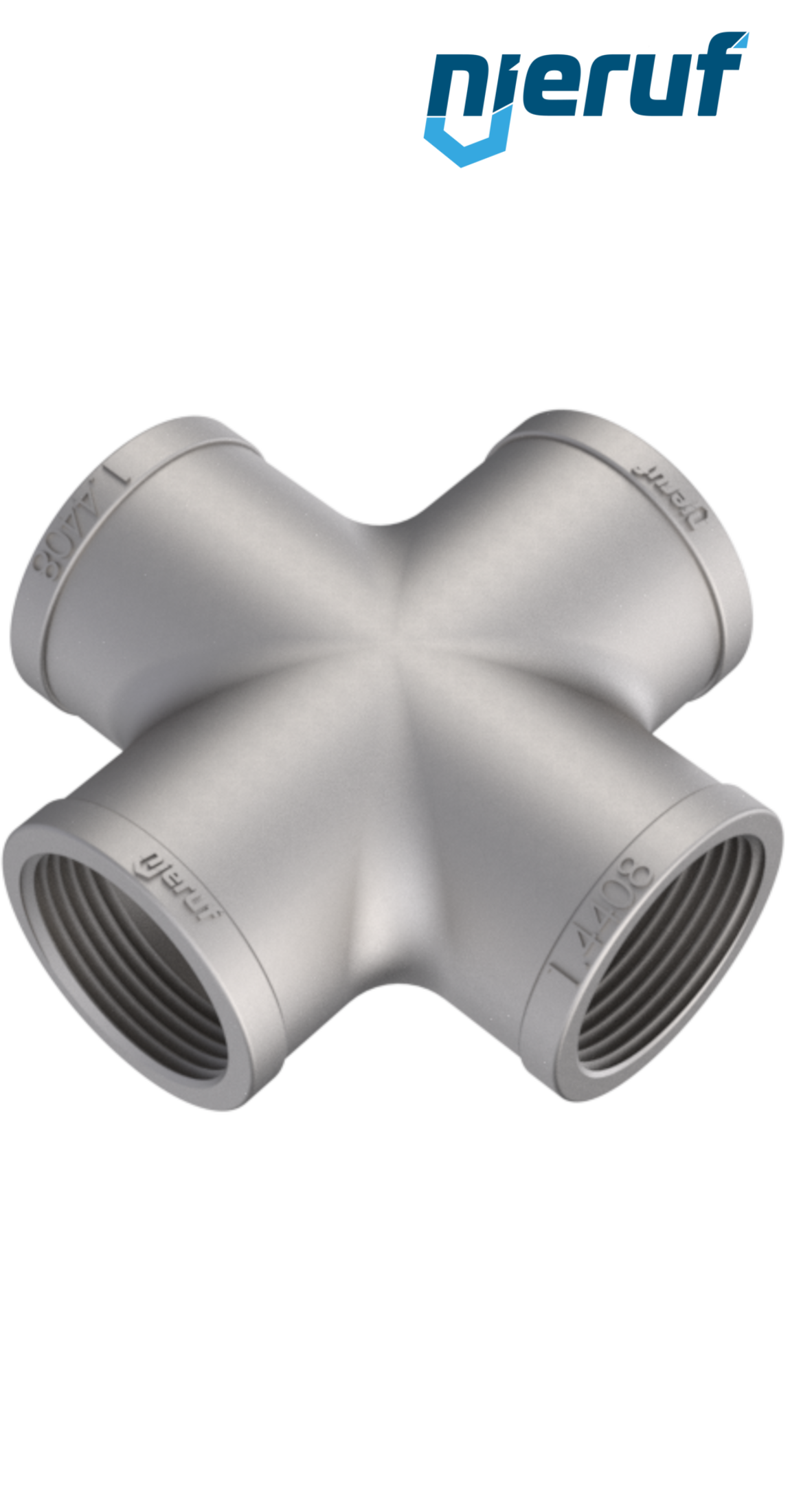 Kreuzstück GF01-1 mit Innengewinde 1/4" Zoll aus Edelstahl 316 im 90° Winkel für flüssige & gasförmige Medien