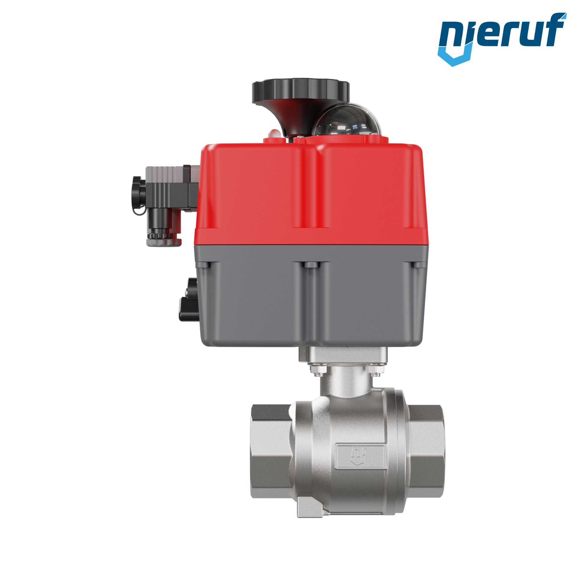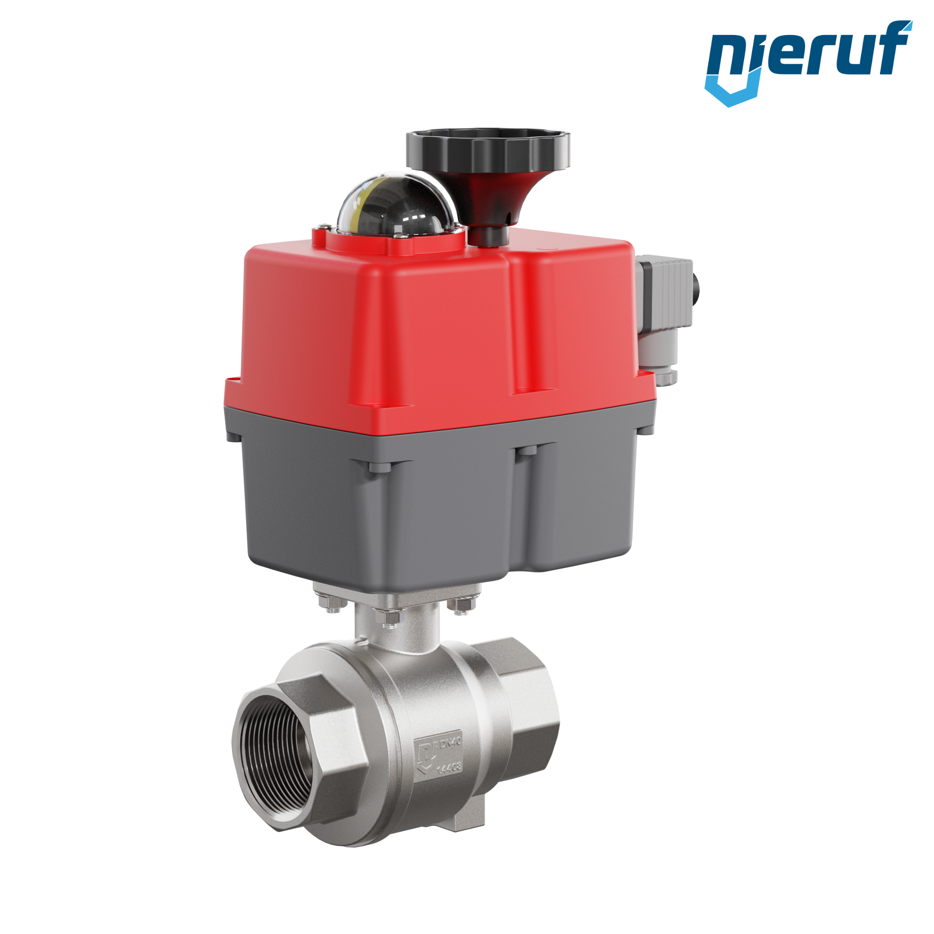 Dieser hoch qualitative Automatik-Muffenkugelhahn aus Edelstahl mit elektronischem Drehantrieb (Serie S) hat eine optische Stellungsanzeige und eine Handnotbetätigung.