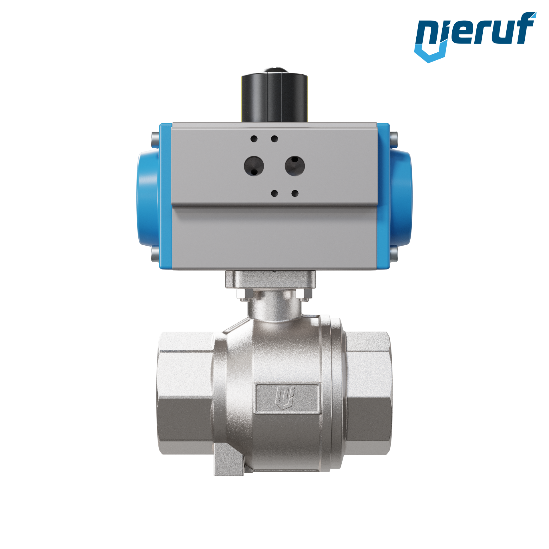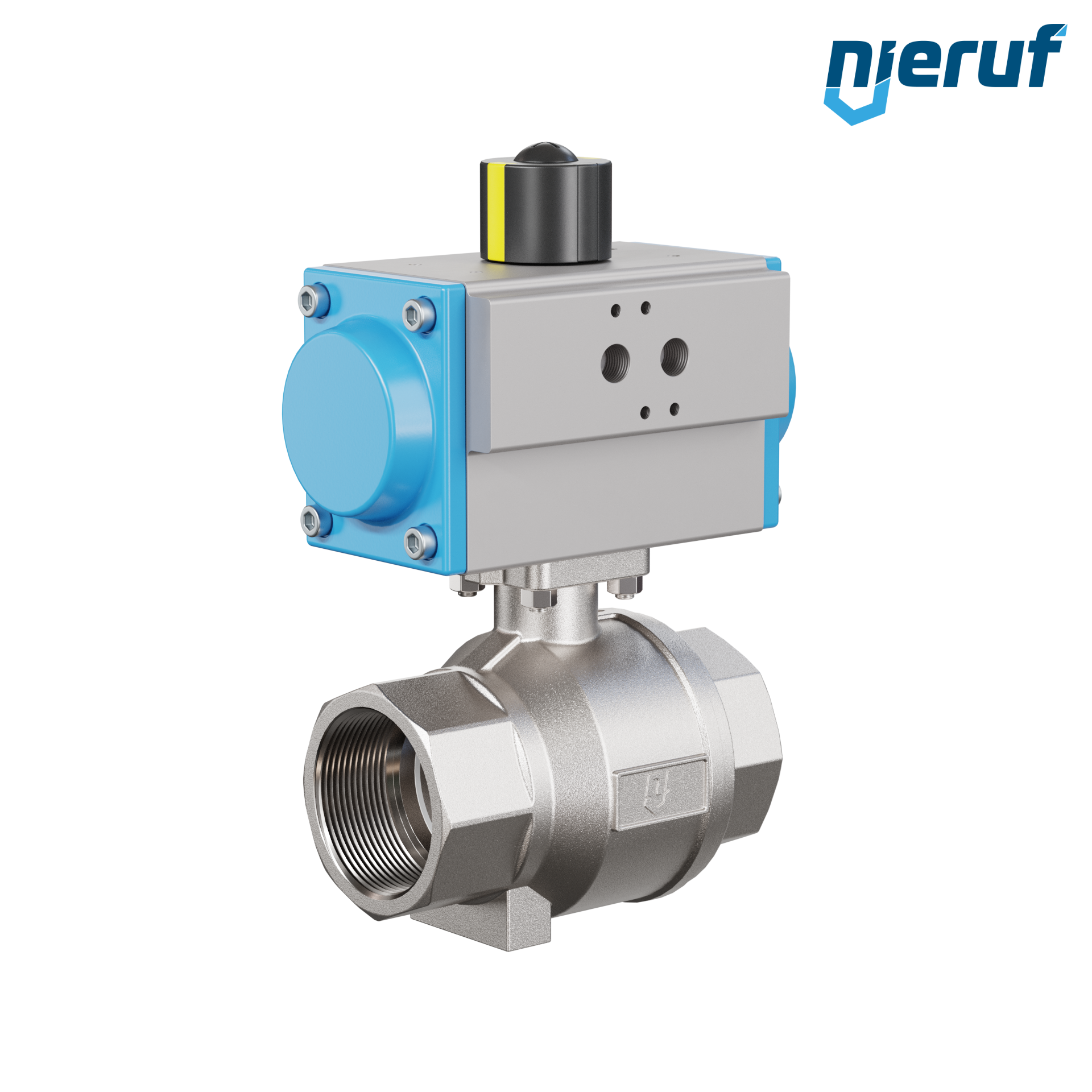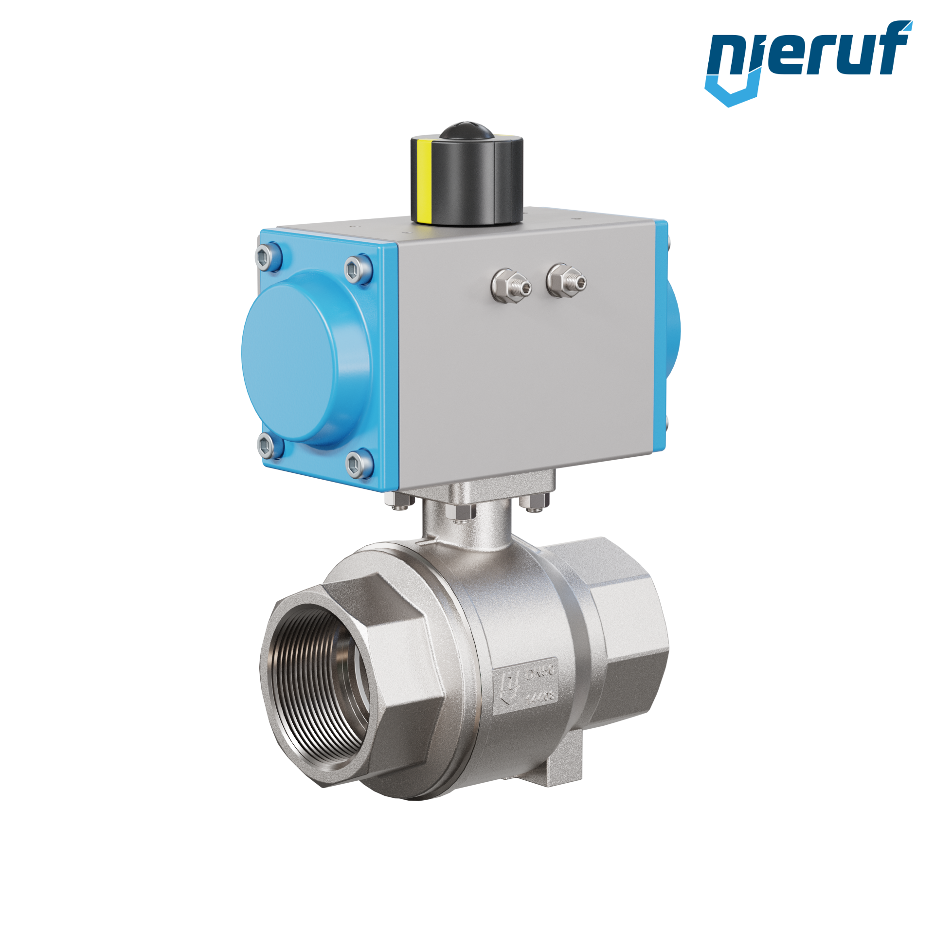 Bauform: Zweiteiliger Muffenkugelhahn mit pneumatischem Antrieb (doppelwirkend)