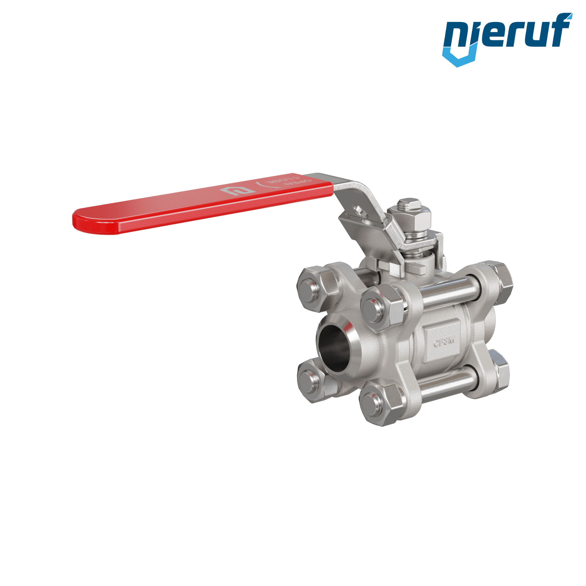 Dreiteiliger 2-Wege Kugelhahn aus Edelstahl 1.4408 DN15 - 1/2" Zoll Anschweissende für flüssige & gasförmige Medien