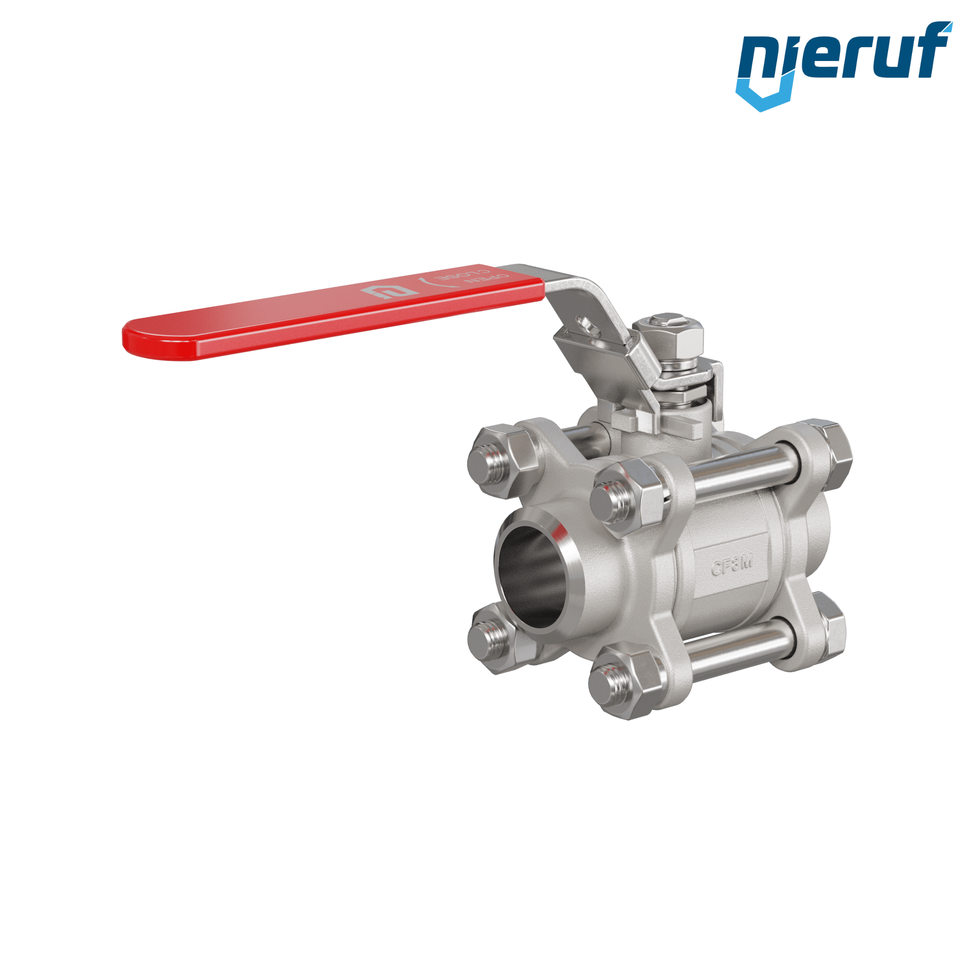 Dreiteiliger 2-Wege Kugelhahn aus Edelstahl 1.4408 DN20 - 3/4" Zoll Anschweissende für flüssige & gasförmige Medien