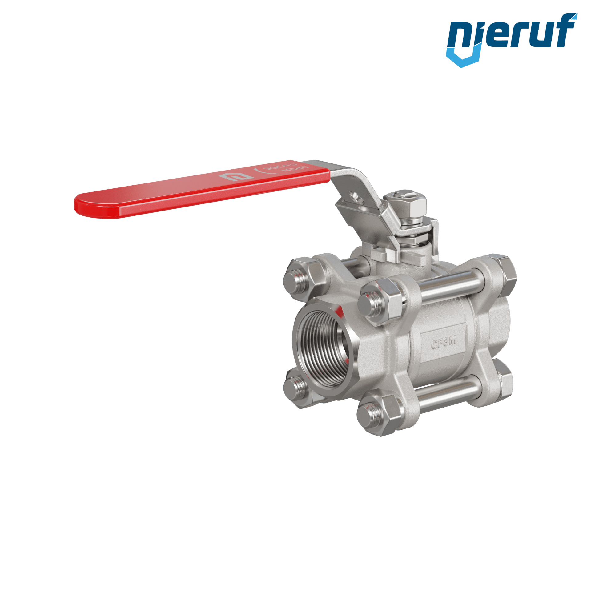 Dreiteiliger 2-Wege Kugelhahn aus Edelstahl 1.4408 DN20 - 3/4" Zoll Innengewinde für flüssige & gasförmige Medien