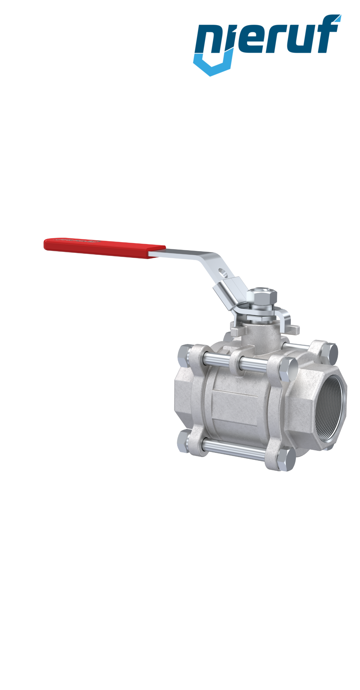 Dreiteiliger 2-Wege Kugelhahn aus Edelstahl 1.4408 DN25 - 1" Zoll Innengewinde NPT für flüssige und gasförmige Medien