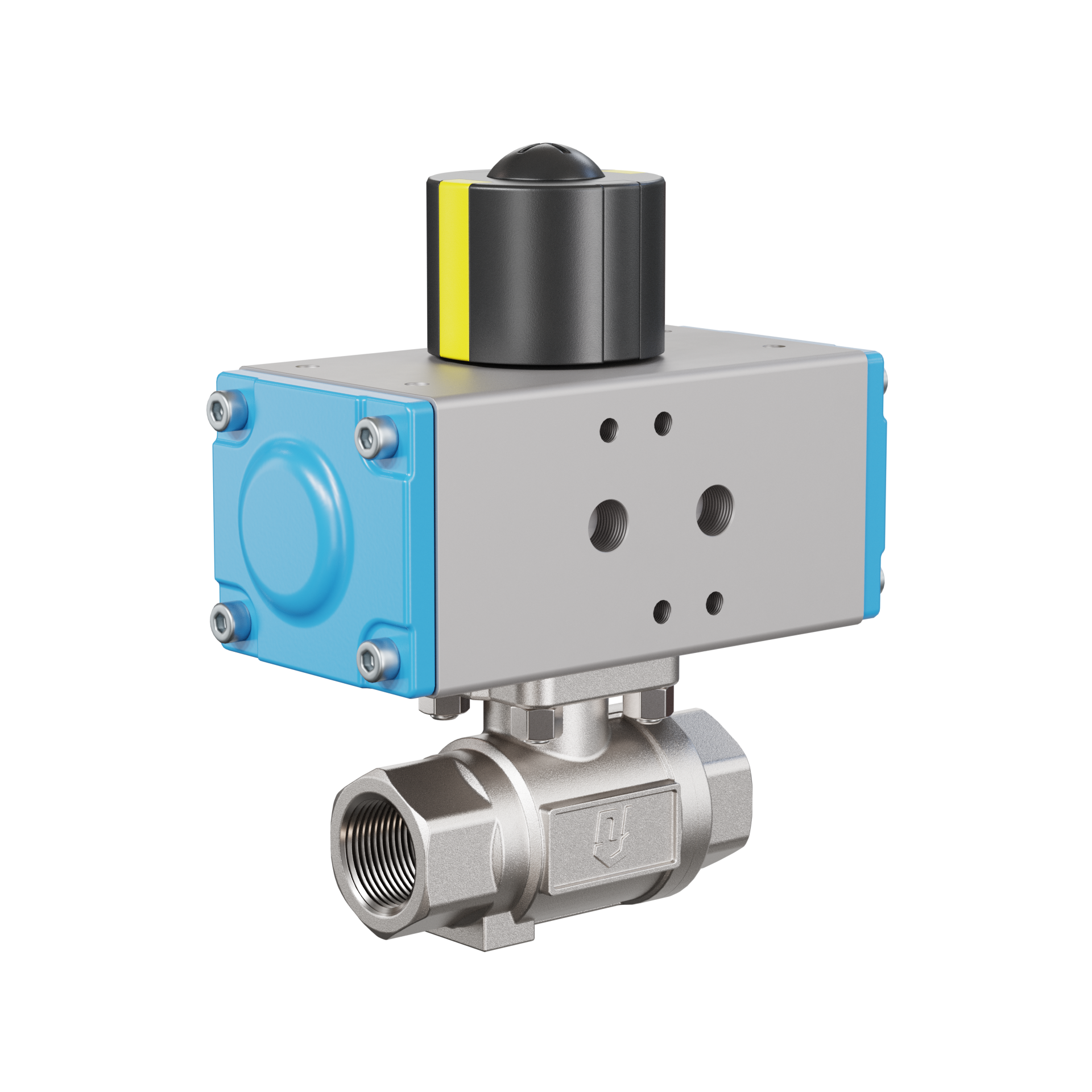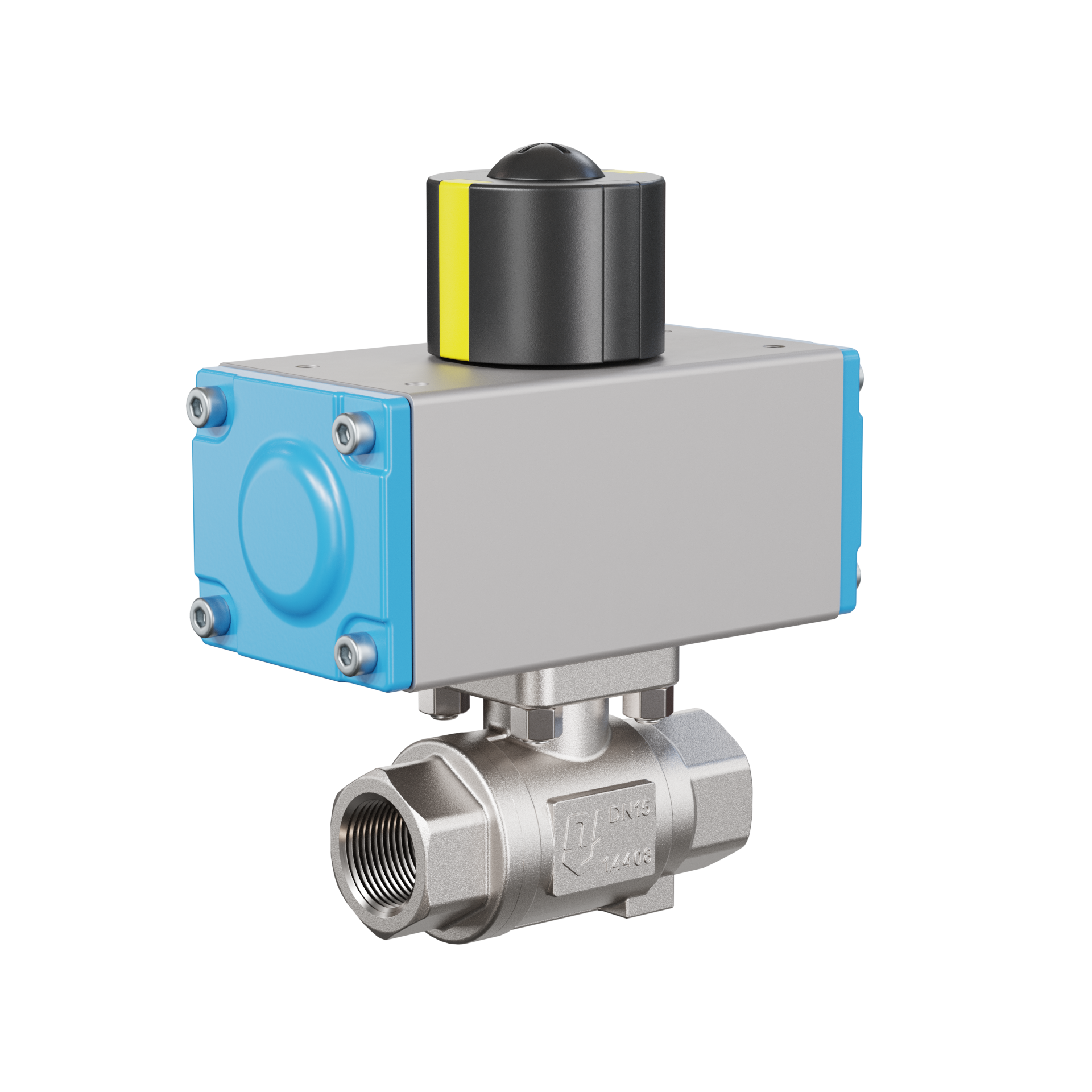 Trinkwasser-Kugelhahn pneumatisch DN15 - 1/2" Zoll Drehantrieb doppeltwirkend PK02