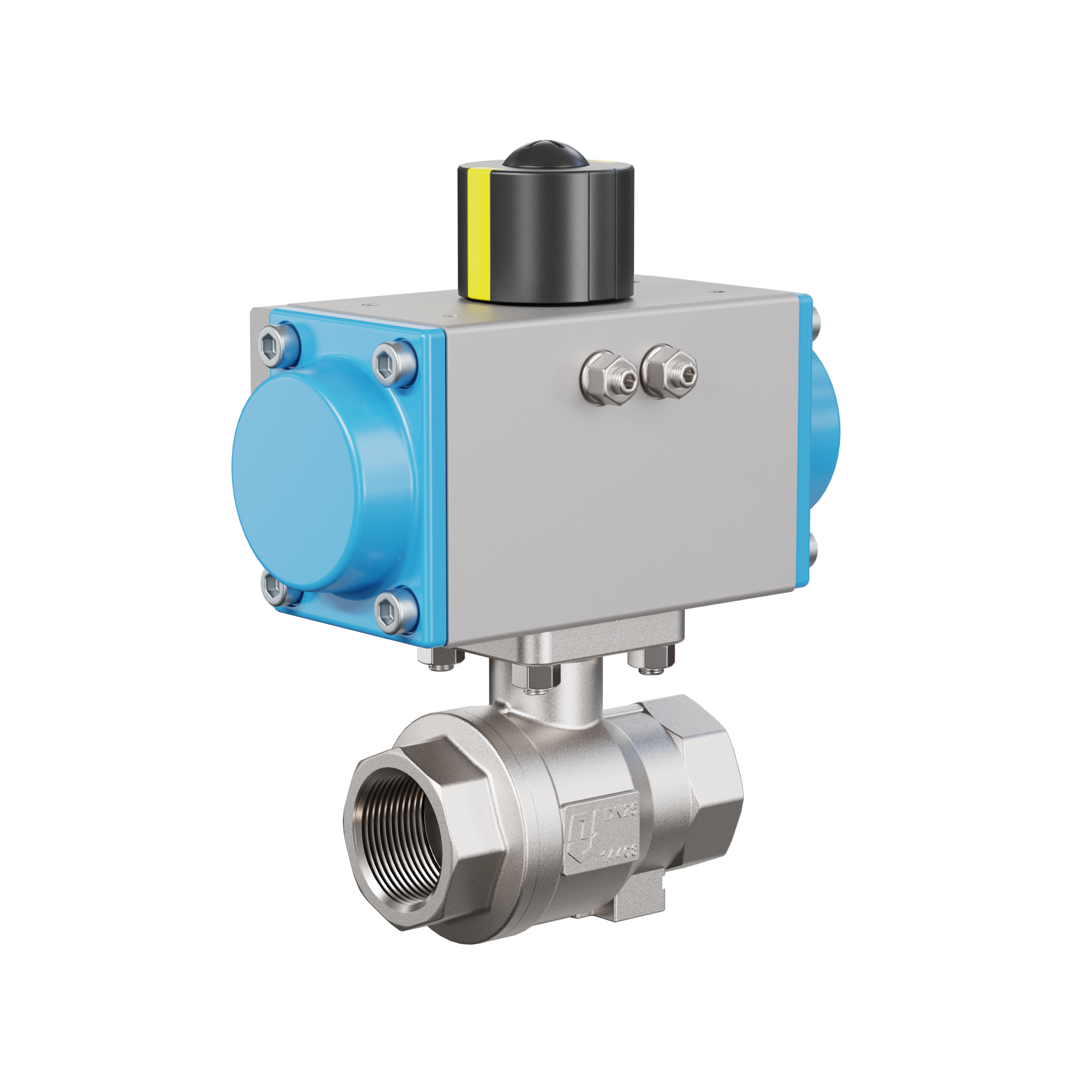 Trinkwasser-Kugelhahn pneumatisch DN25 - 1" Zoll Drehantrieb doppeltwirkend PK02