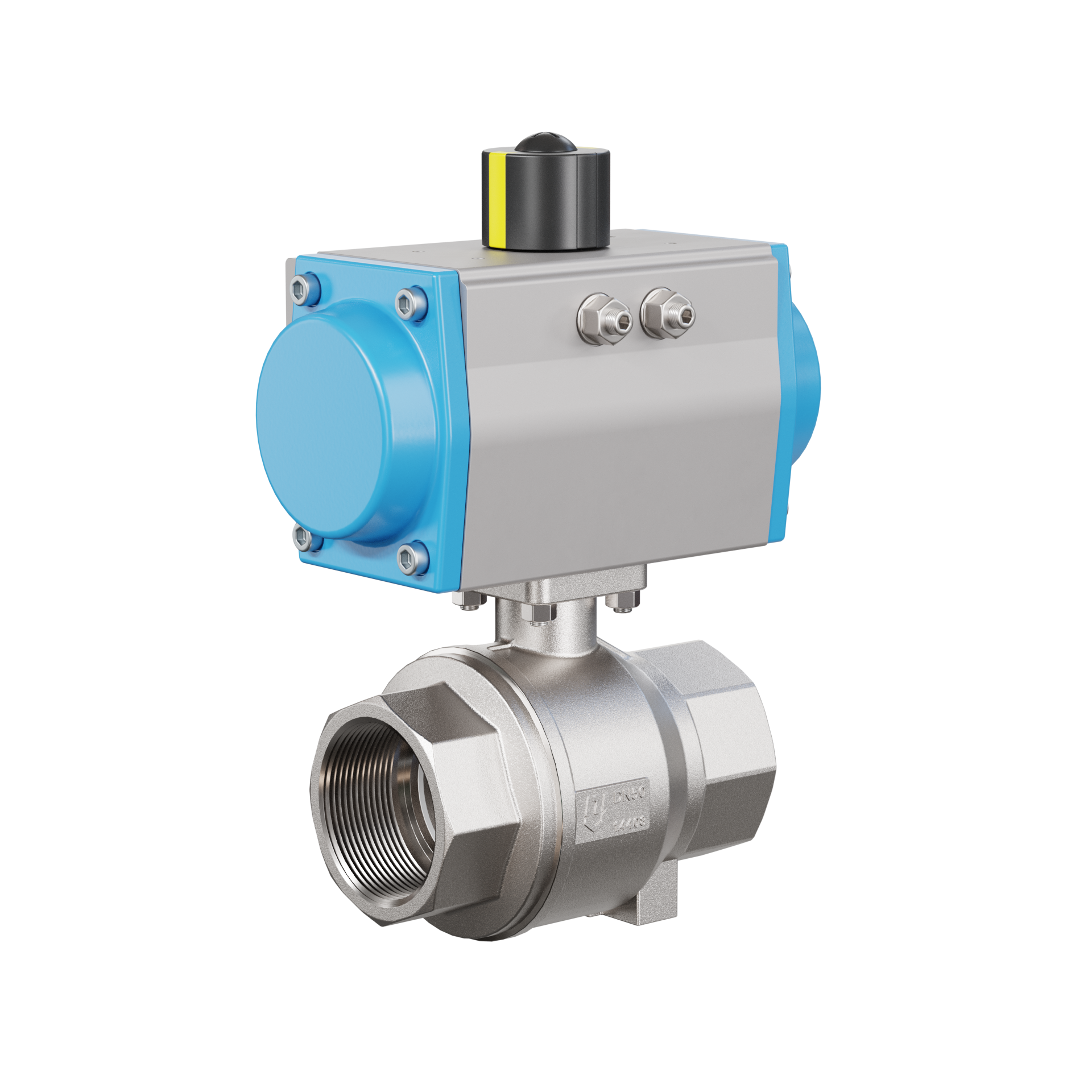 Trinkwasser-Kugelhahn pneumatisch DN50 - 2" Zoll Drehantrieb doppeltwirkend PK02
