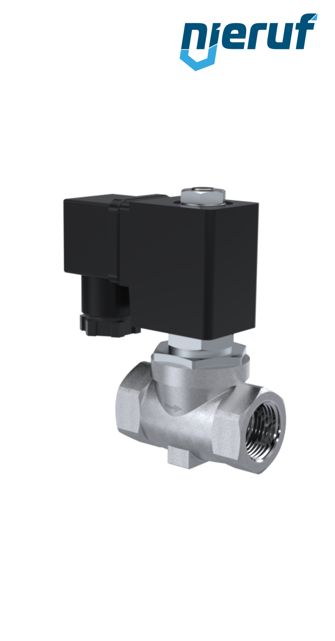 Membran-Magnetventil G 1/2" Zoll DN 8,0 aus Edelstahl 1.4408 Dichtung aus EPDM servogesteuert Anschlußspannung 230V 50Hz Druck 0,1 - 16 bar