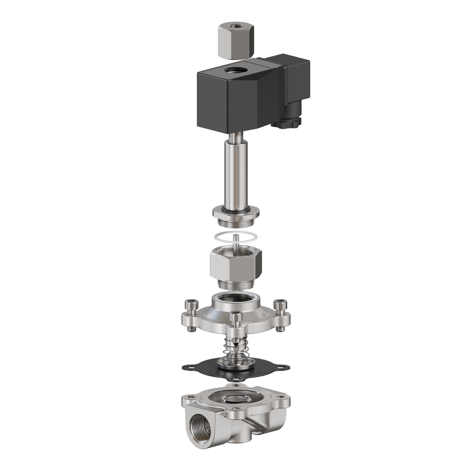 Magnetventil G 1/2" Zoll NO - stromlos offen zwangsgesteuert Edelstahl 1.4308 EPDM 24V DC flüssig & gasförmige Medien