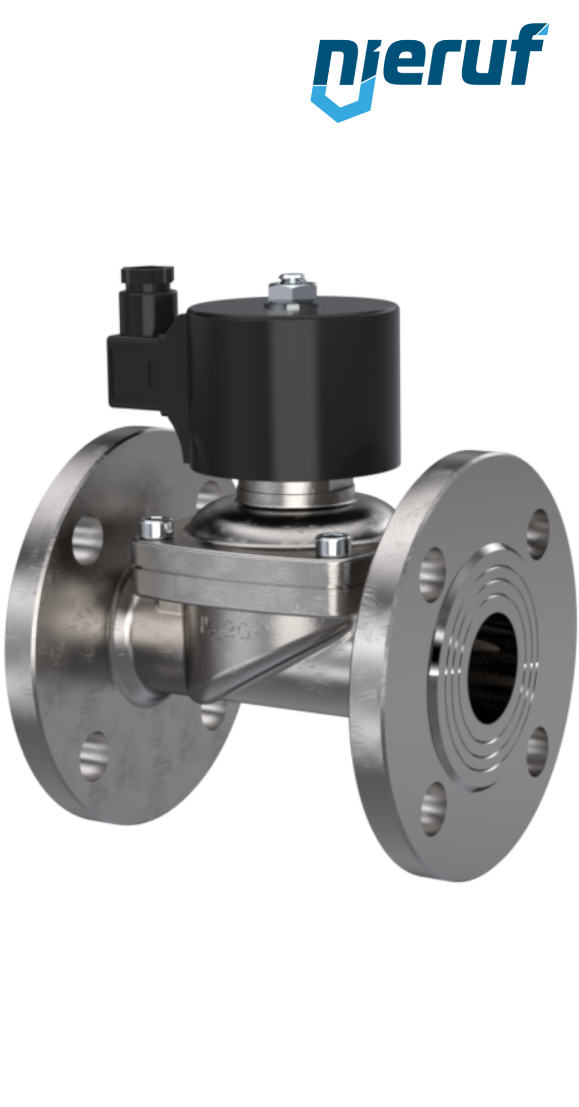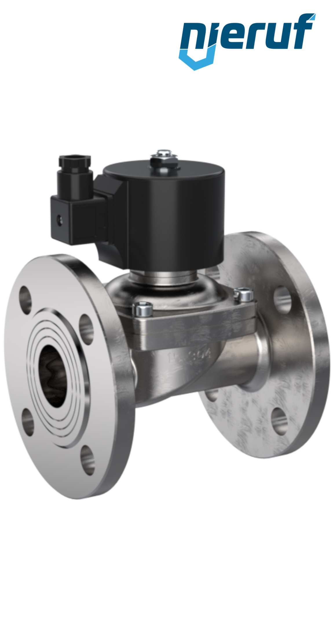 2/2 Wege Magnetventil Flansch DN25 aus Edelstahl 1.4308 Dichtung aus FKM zwangsgesteuert Anschlußspannung 24V DC Druck 0,0 - 8 bar
