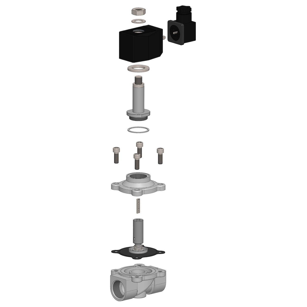 2/2 Wege Magnetventil EV06 in Vakuum-Ausführung G 1 1/2" Zoll DN40 aus Edelstahl 1.4308 Dichtung aus NBR zwangsgesteuert Anschluss-Spannung 24V DC Druck -1 - 5 bar