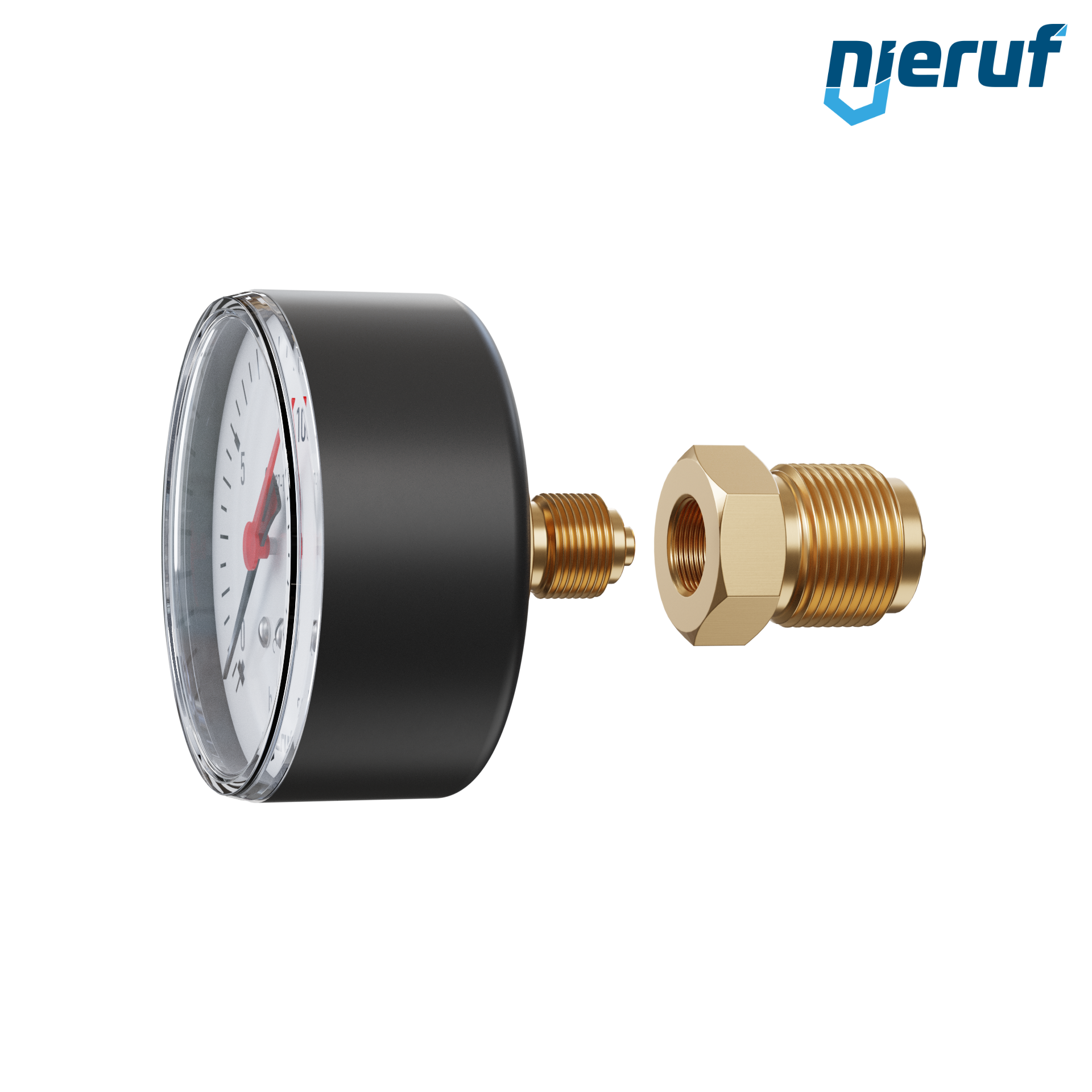 Im Lieferumfang enthalten ist das axiale Manometer mit 1/4" Zoll sowie das Übergangsstück von 1/4" Zoll zu 1/2" Zoll